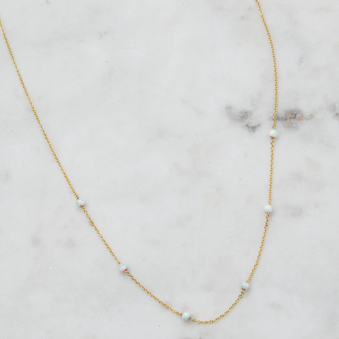 Minimalist Round Cut Opal Gemstone Necklace For Her -October Birthstone