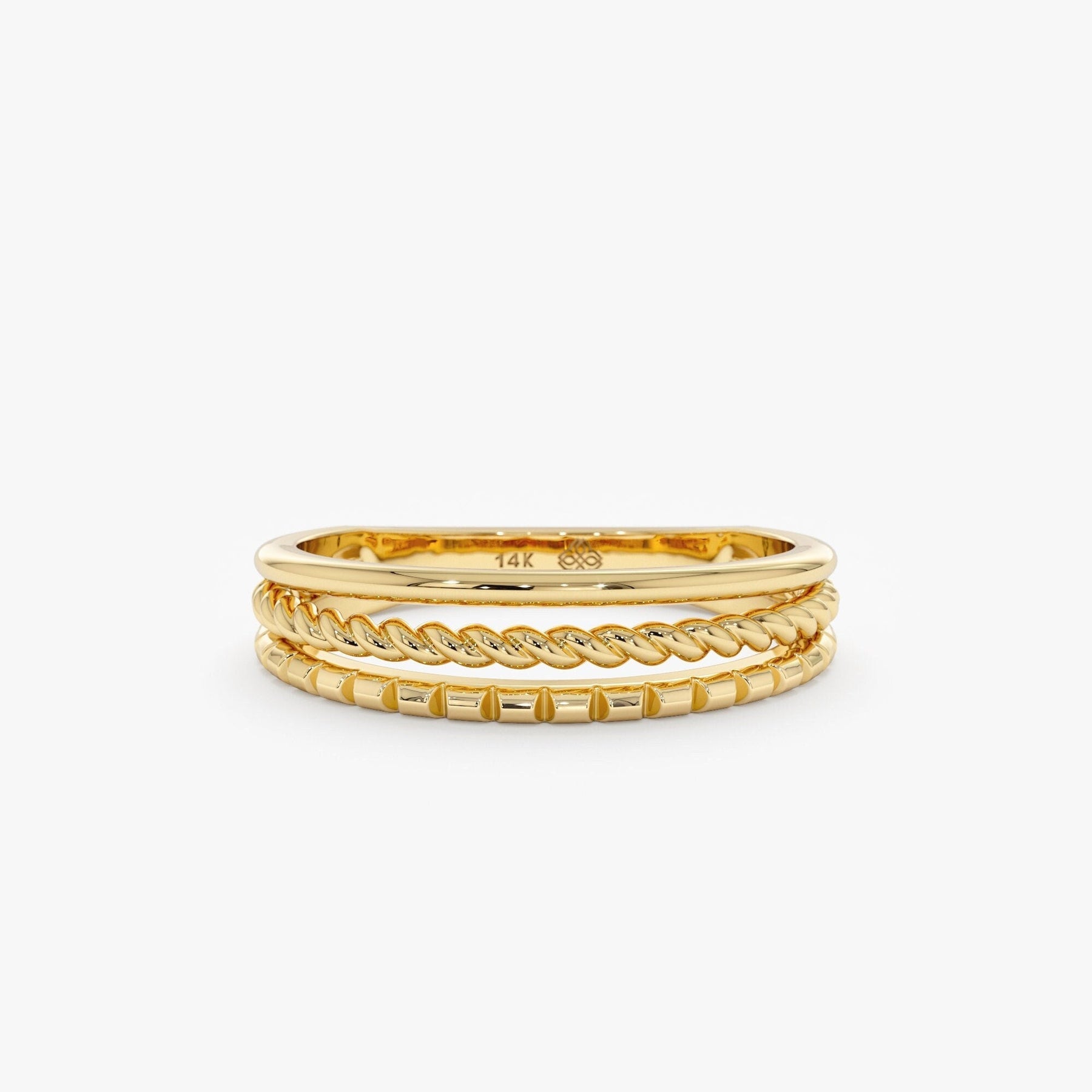 It sounds like you're describing a piece of jewelry: a three-row moissanite diamond ring in 14K yellow gold for women. Moissanite is a popular diamond alternative known for its brilliance and durability, often chosen for its similarity to diamonds but at a lower cost. A three-row design suggests multiple rows of stones, which can add to the ring's sparkle and elegance. 14K yellow gold is a classic choice for jewelry settings, known for its durability and warm, traditional color. Such a piece would likely be stunning and suitable for various occasions, whether as an engagement ring, a gift, or a personal accessory. If you're considering purchasing or discussing this type of jewelry,