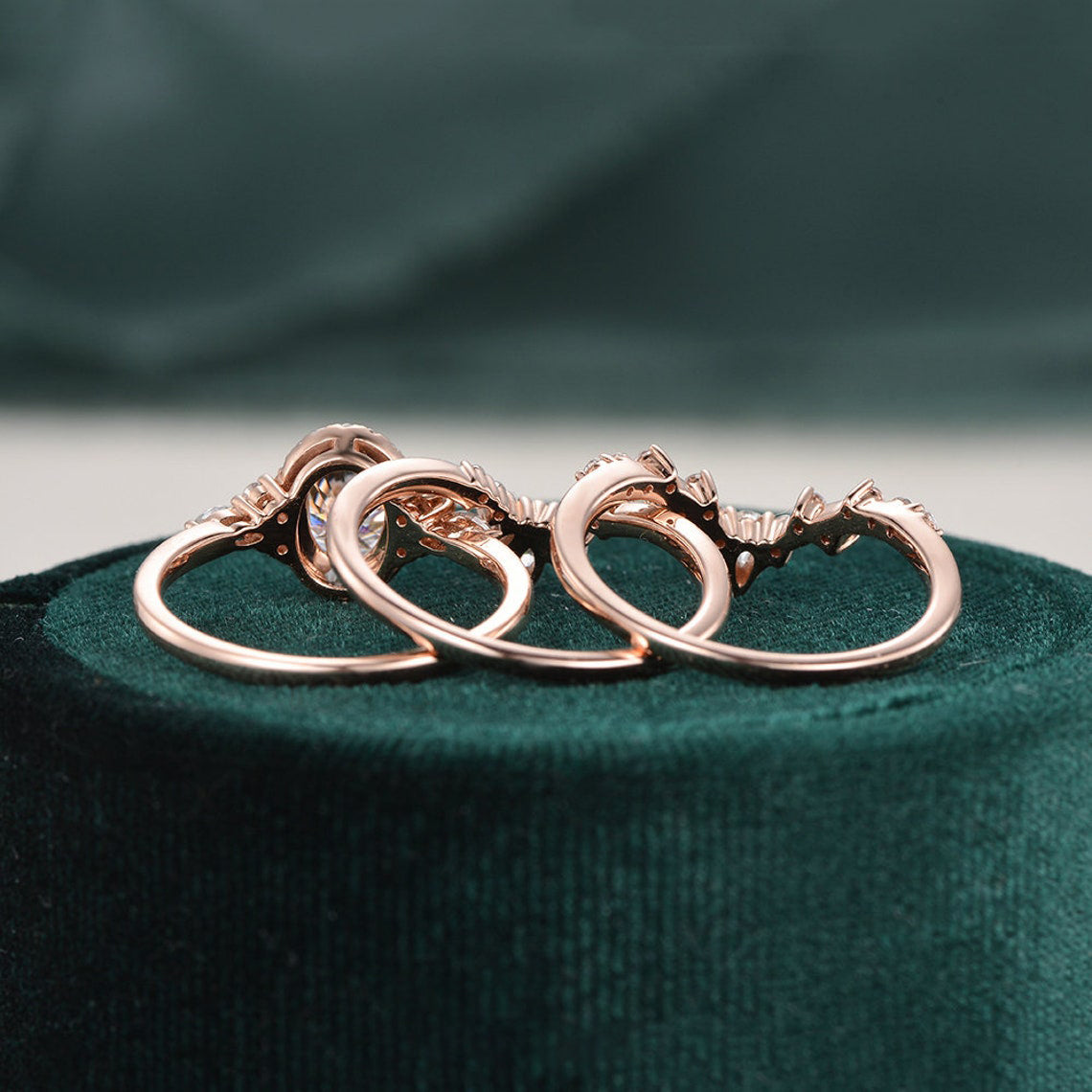 1.0 CT Oval Cut Cluster Halo Moissanite Bridal Ring Set