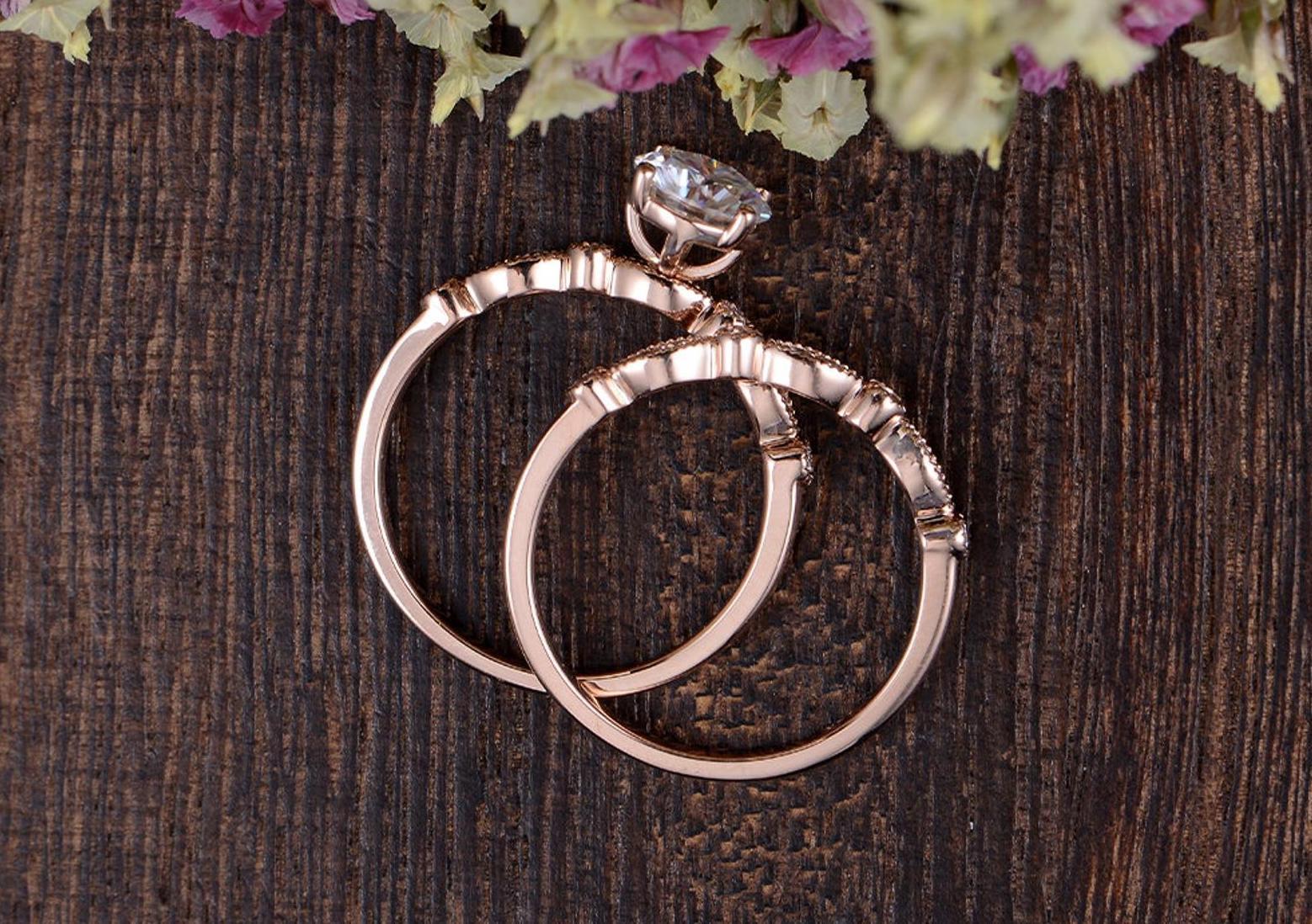 1.0 CT Round Cut Solitaire Milgrain Style Moissanite Bridal Ring Set