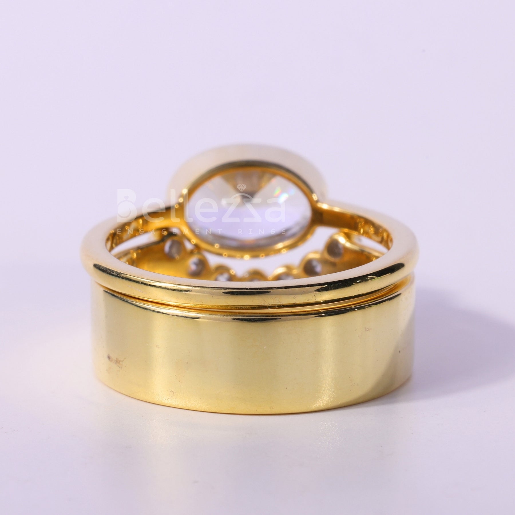 1.50CT East-west Oval Cut Diamond Curved Moissanite Bridal Ring Set