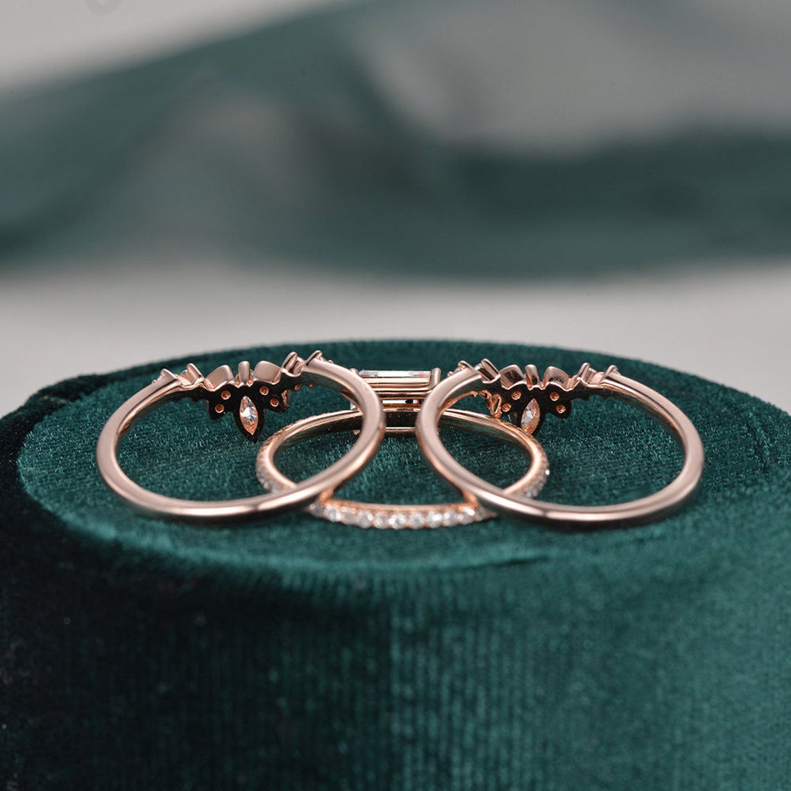 2.0 CT Emerald Cut Solitaire Pave Setting Moissanite Bridal Ring Set