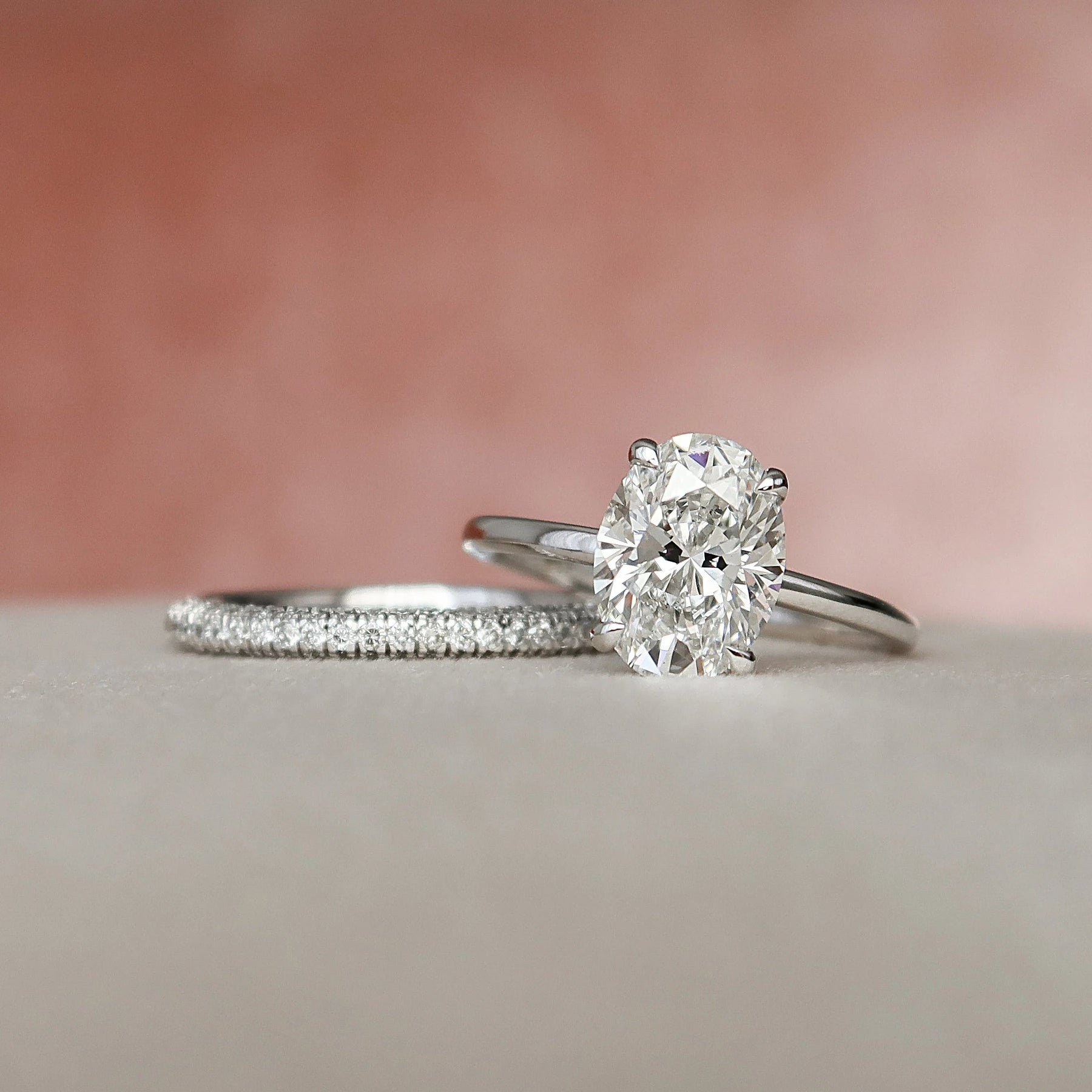 2.0CT Oval Cut Moissanite Diamond Halo Bridal Engagement Ring Set