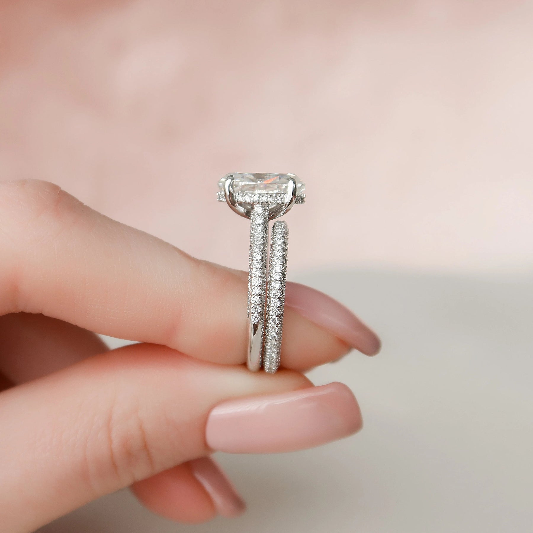 3.50CT Oval Cut Moissanite Halo Eternity Pave Bridal Engagement Ring Set