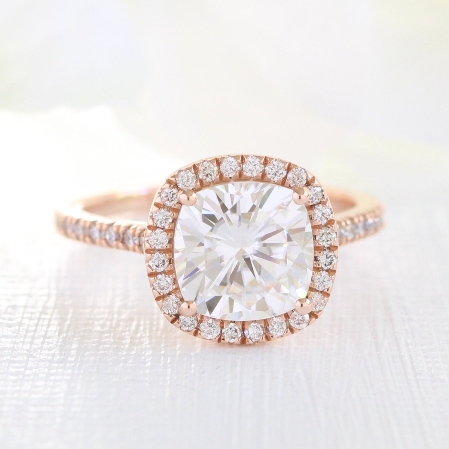 Cushion Halo Pave Moissanite Ring With Scalloped Diamond Band