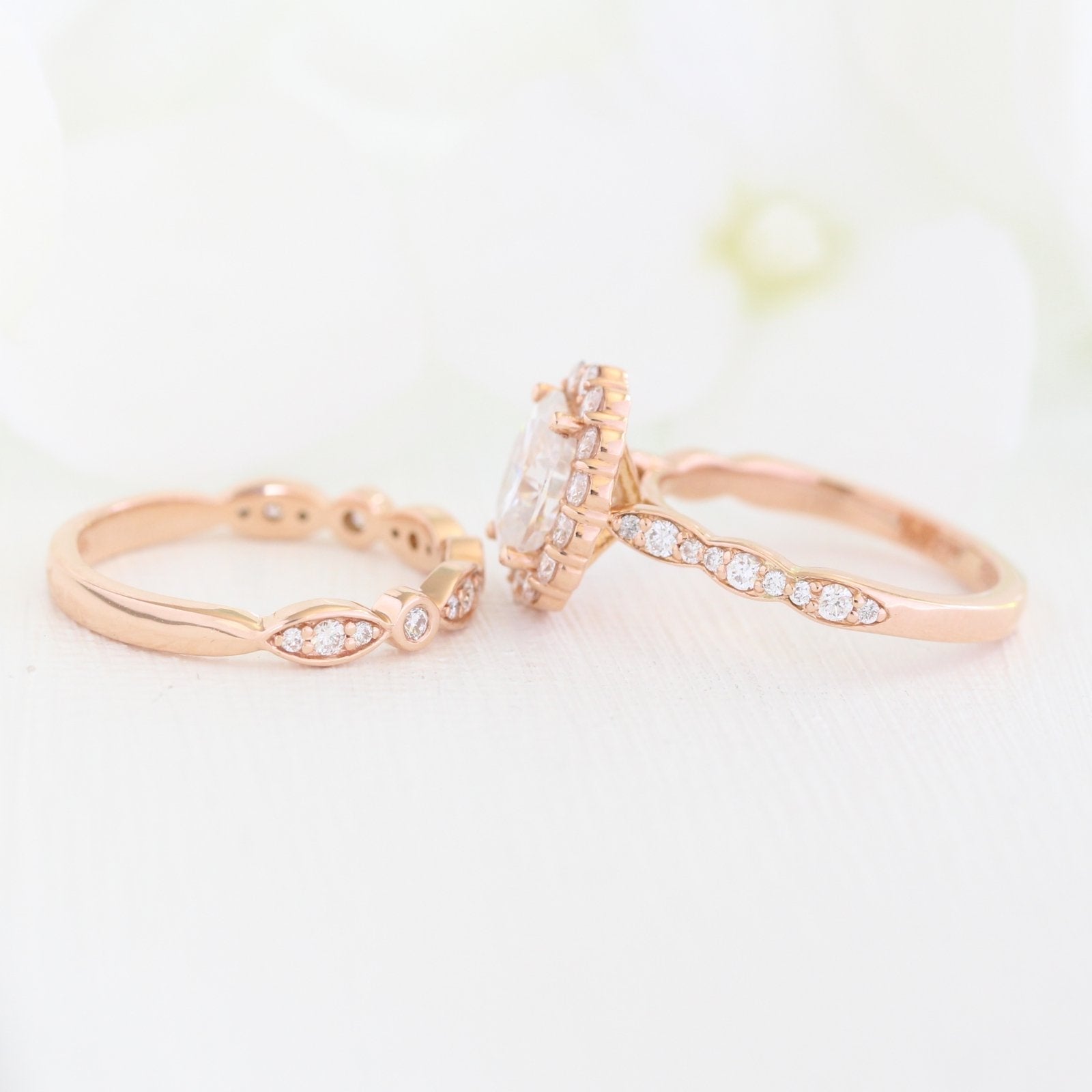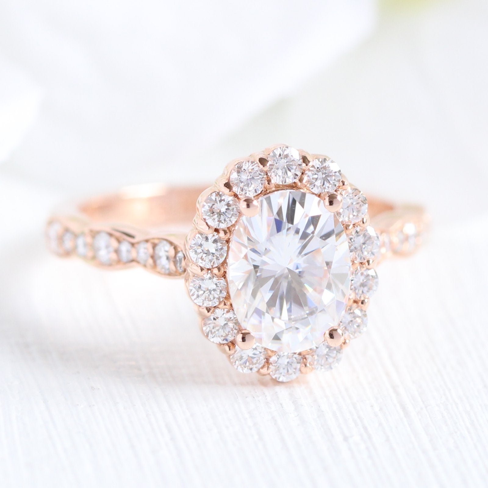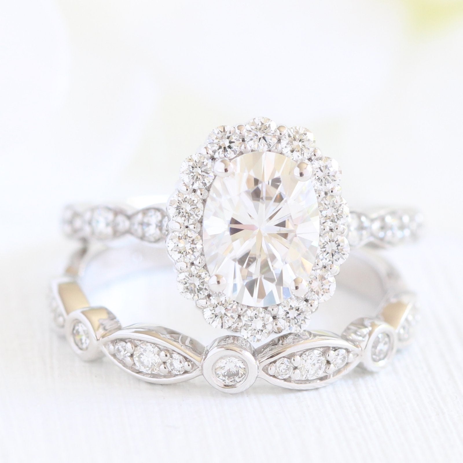 1.50ct Oval Moissanite Halo Engagement Ring With Matching Diamond Band