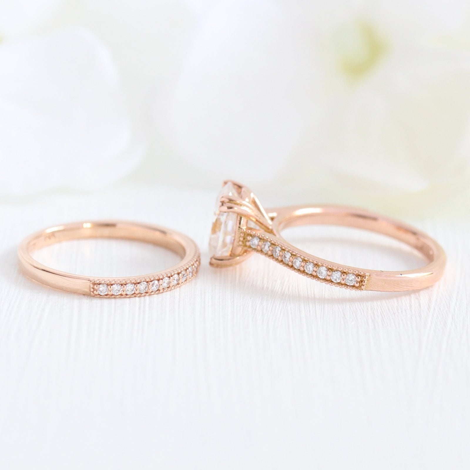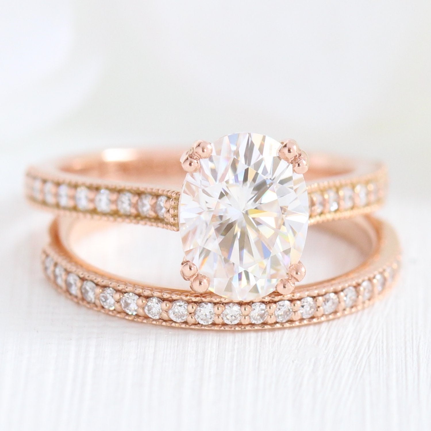 2.0ct Oval Moissanite Channel Set Engagement Ring with Matching Wedding Band