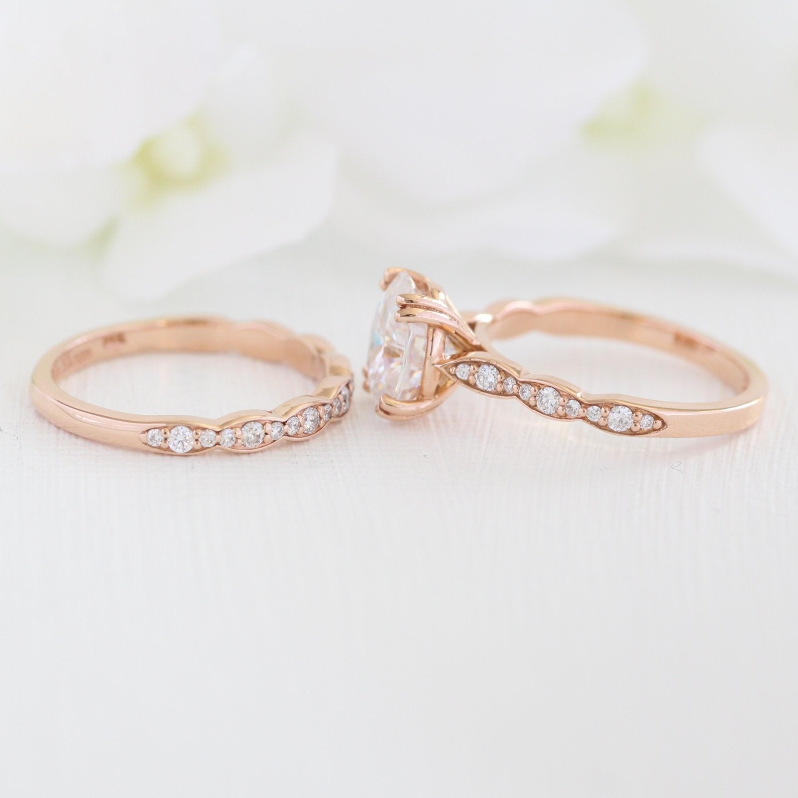 2.0ct Oval Moissanite Double Claw Ring with Unique Wedding Band