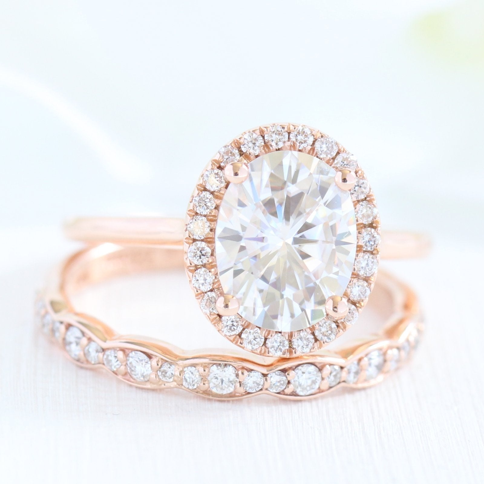 ✥ Elevate your love story with our Oval Halo Moissanite Ring with Scalloped Diamond Band, an exquisite bridal ring set that beautifully symbolizes your unique and enduring bond. The engagement ring features a stunning oval-cut Moissanite center stone, encircled by a radiant halo of smaller Moissanite gems, casting a captivating glow that mirrors the depth of your affection. The intricately designed scalloped diamond band adds a touch of timeless elegance, enhancing the brilliance of the ring. The matching wedding band complements this ensemble perfectly, creating a harmonious duo that represents the past, present, and future of your love. Crafted with precision and artistry, this set is a promise of a radiant future filled with love, style, and lasting beauty.