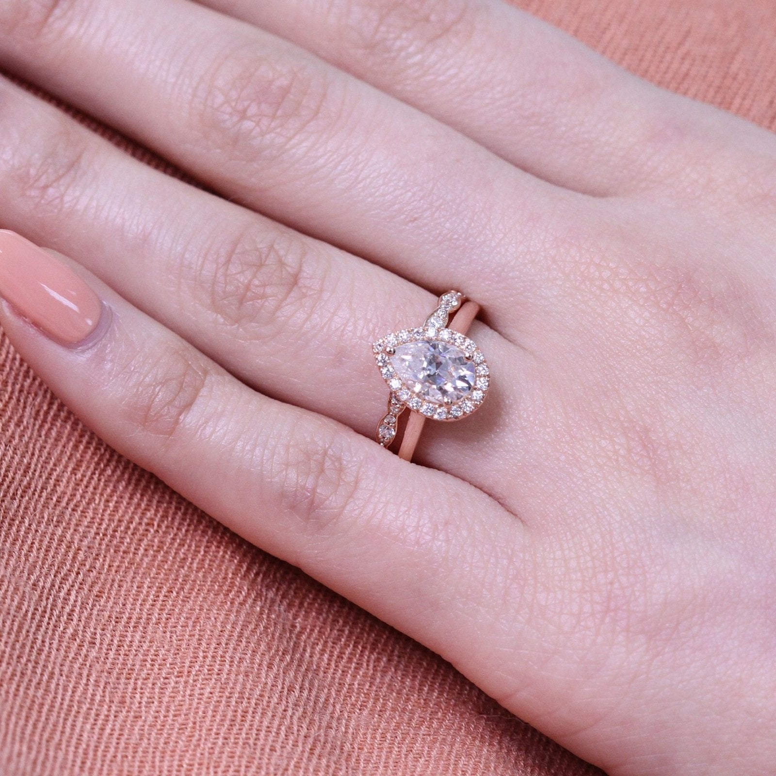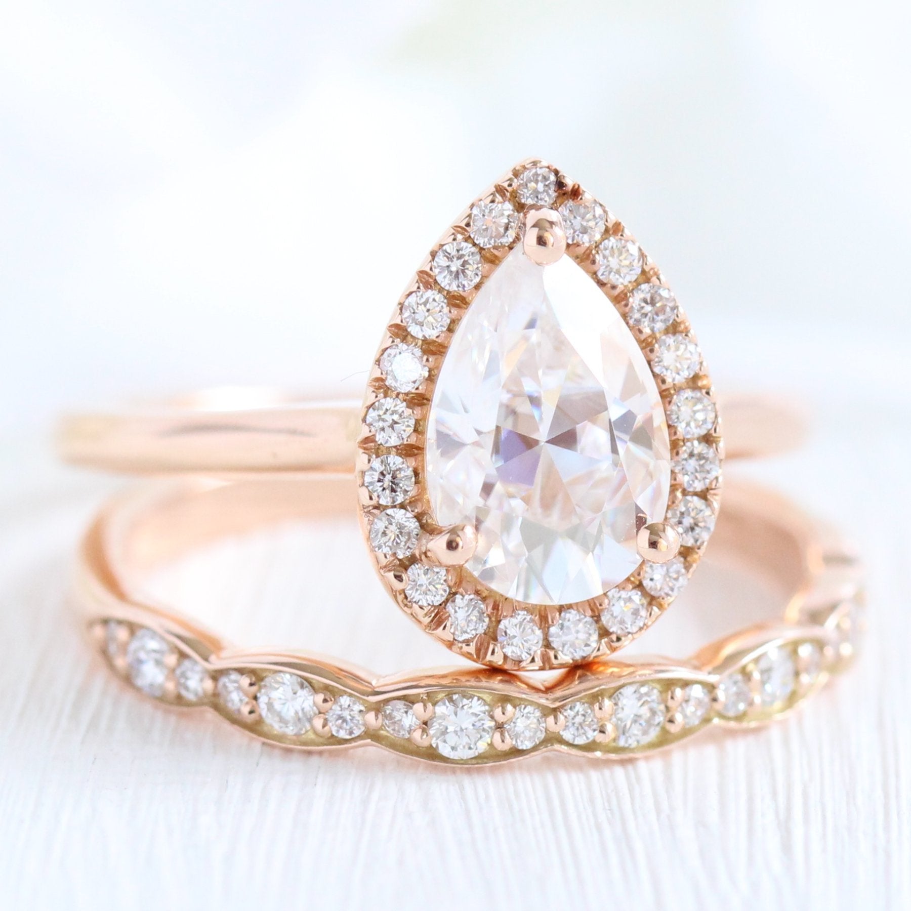 Pear Cut Moissanite Ring With Scalloped Diamond Band