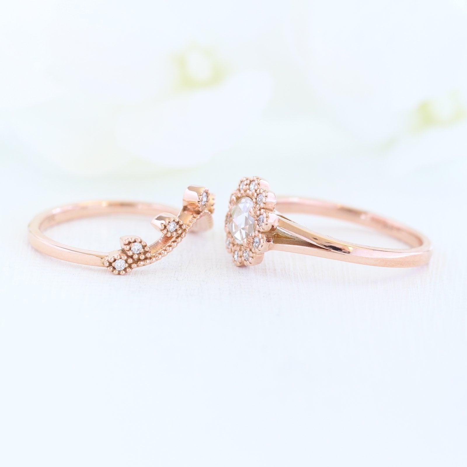 Round Cut Moissanite Ring With Leaf Diamond Band
