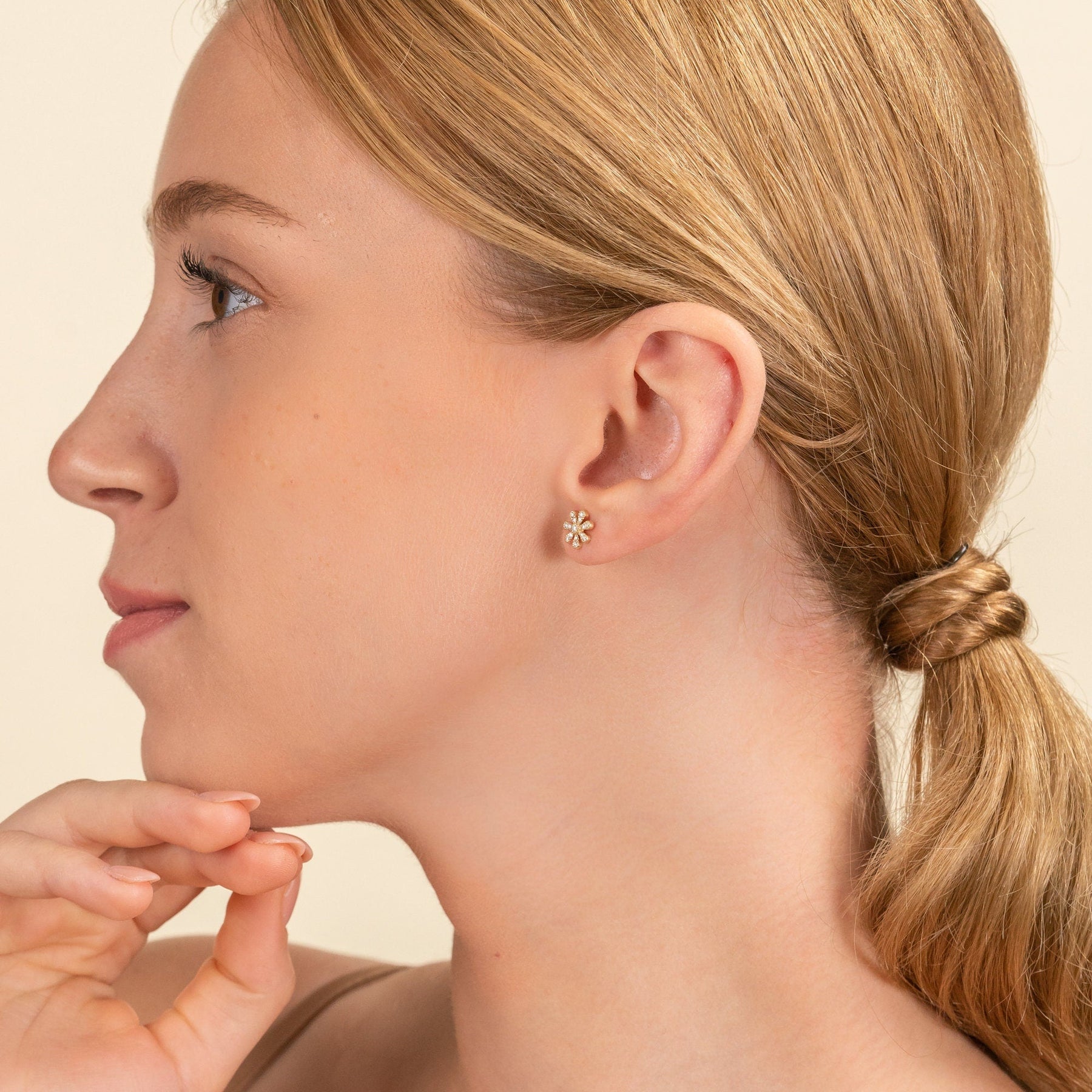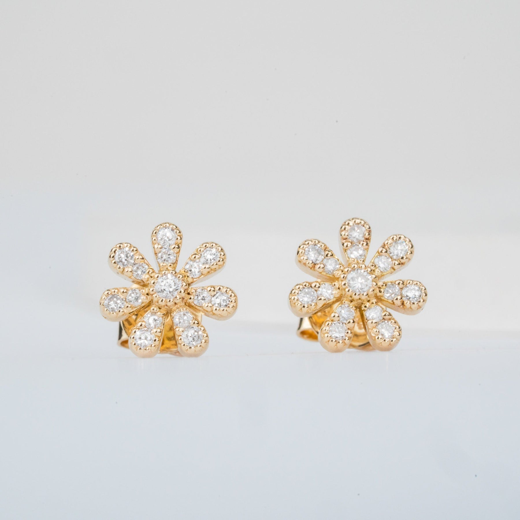 ✥ Introducing our enchanting 0.18CT Round Floral Moissanite Diamond Stud Earrings for Women, designed to captivate with their intricate floral-inspired design. Crafted in [metal type], each earring showcases a round moissanite diamond arranged in a delicate floral motif, symbolizing beauty and femininity. Perfect for adding a touch of elegance to any outfit, these stud earrings are ideal for both everyday wear and special occasions. The floral design imbues them with a timeless charm, making them a meaningful gift or a treasured addition to your own jewelry collection. Embrace the allure of nature's beauty with these exquisite earrings, crafted to sparkle and shimmer with every movement, enhancing your style with their radiant brilliance and refined craftsmanship.