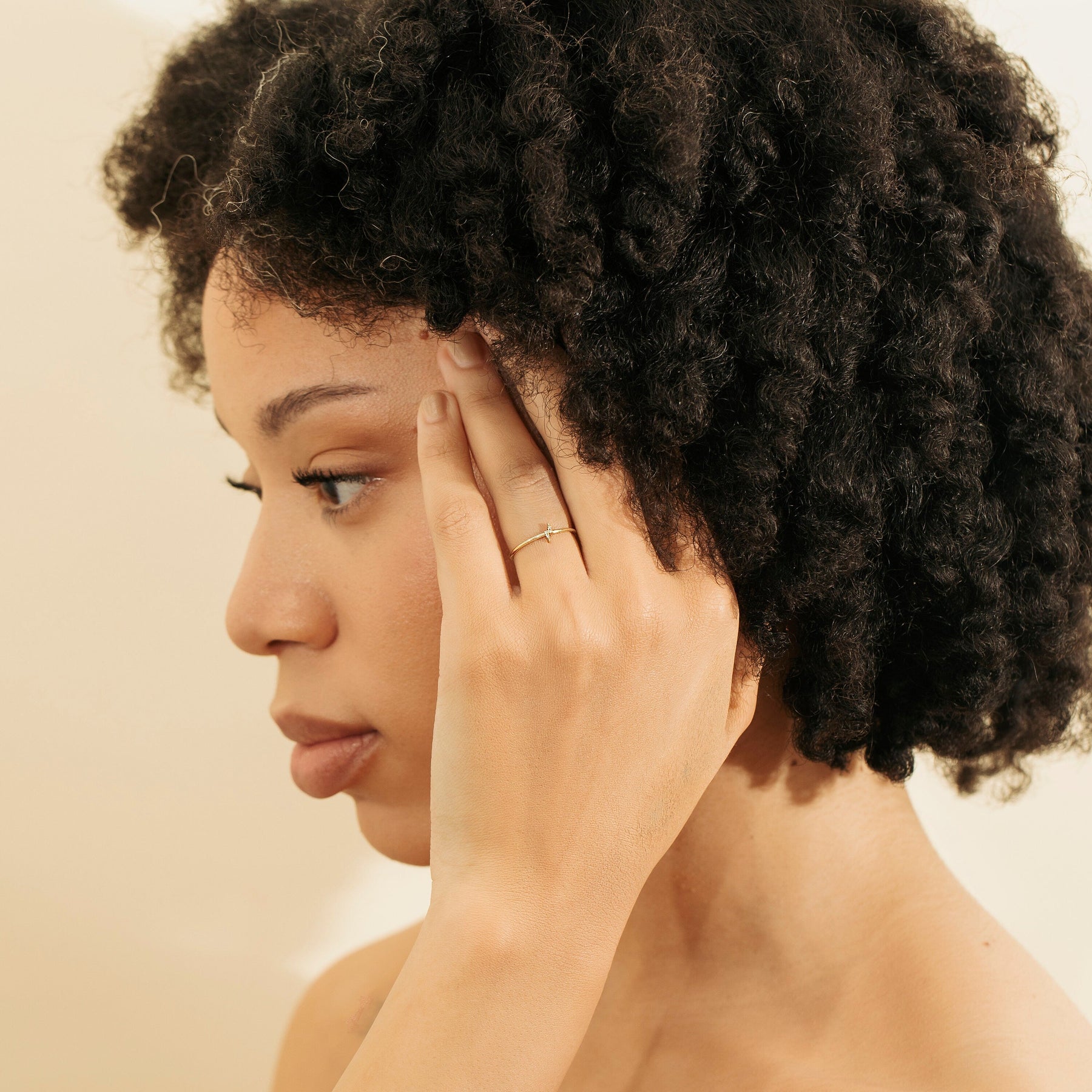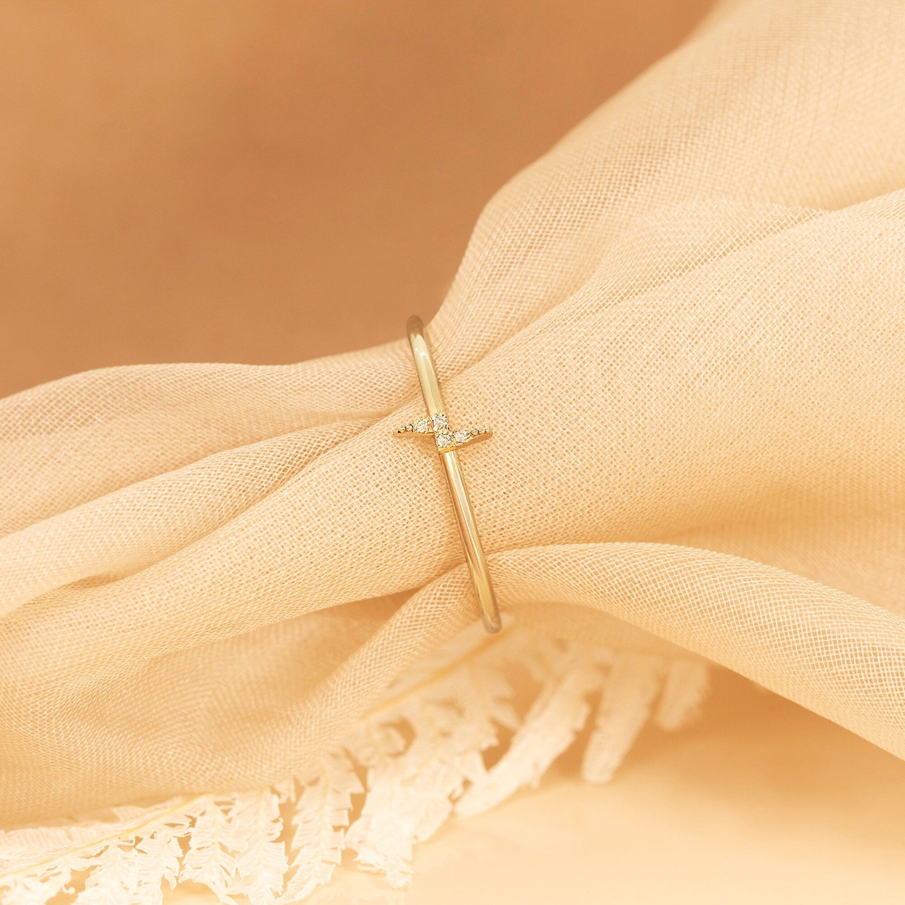 14K Yellow Gold Round Cut Lightning Bolt Ring for Christmas Gift
