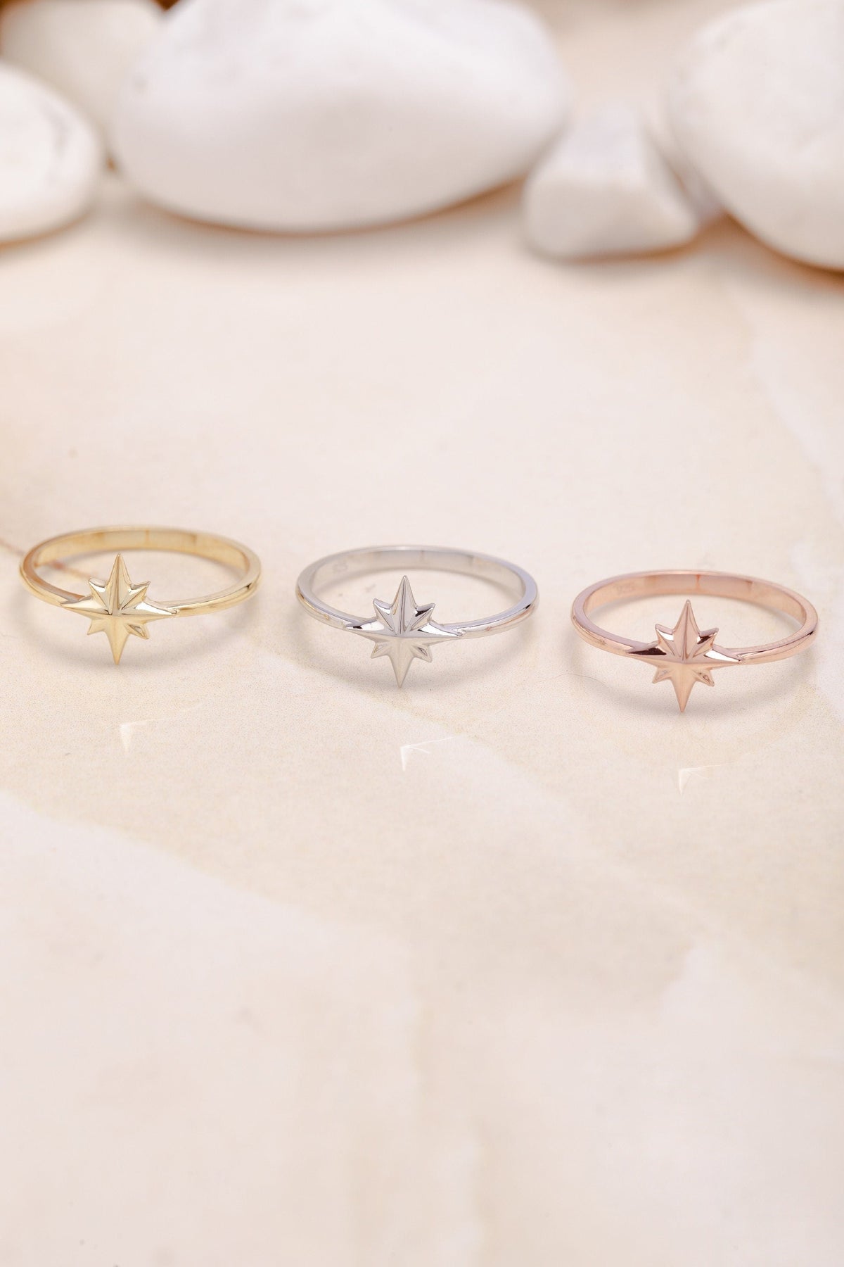 18K Yellow Gold Starburst Wedding Ring Gift for Women