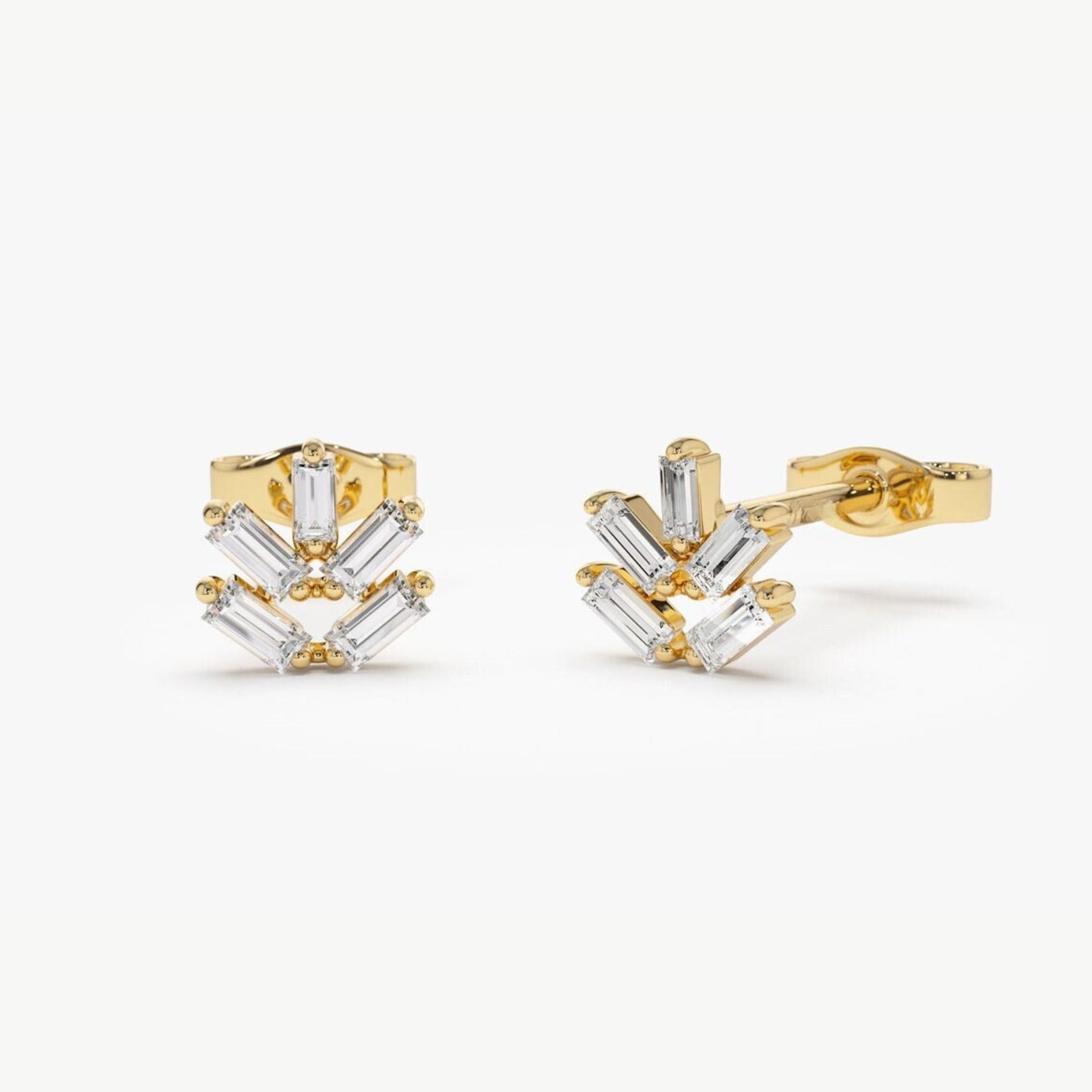 Baguette Cut Diamond Stud Earrings for Christmas Gift