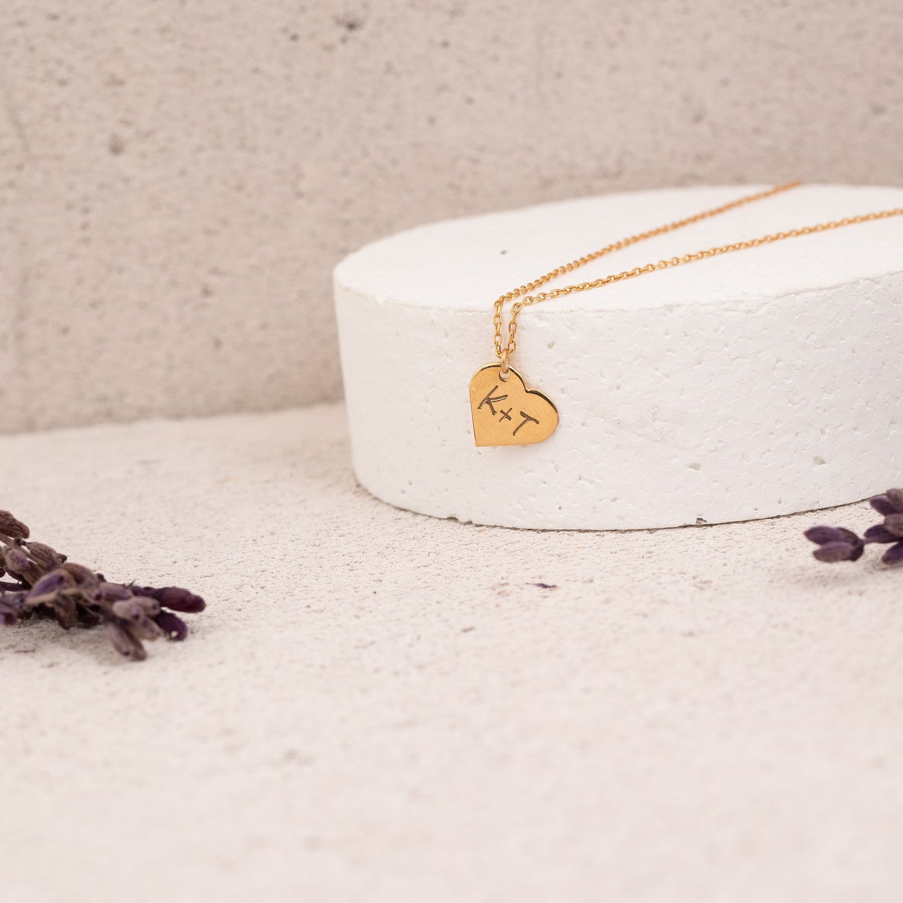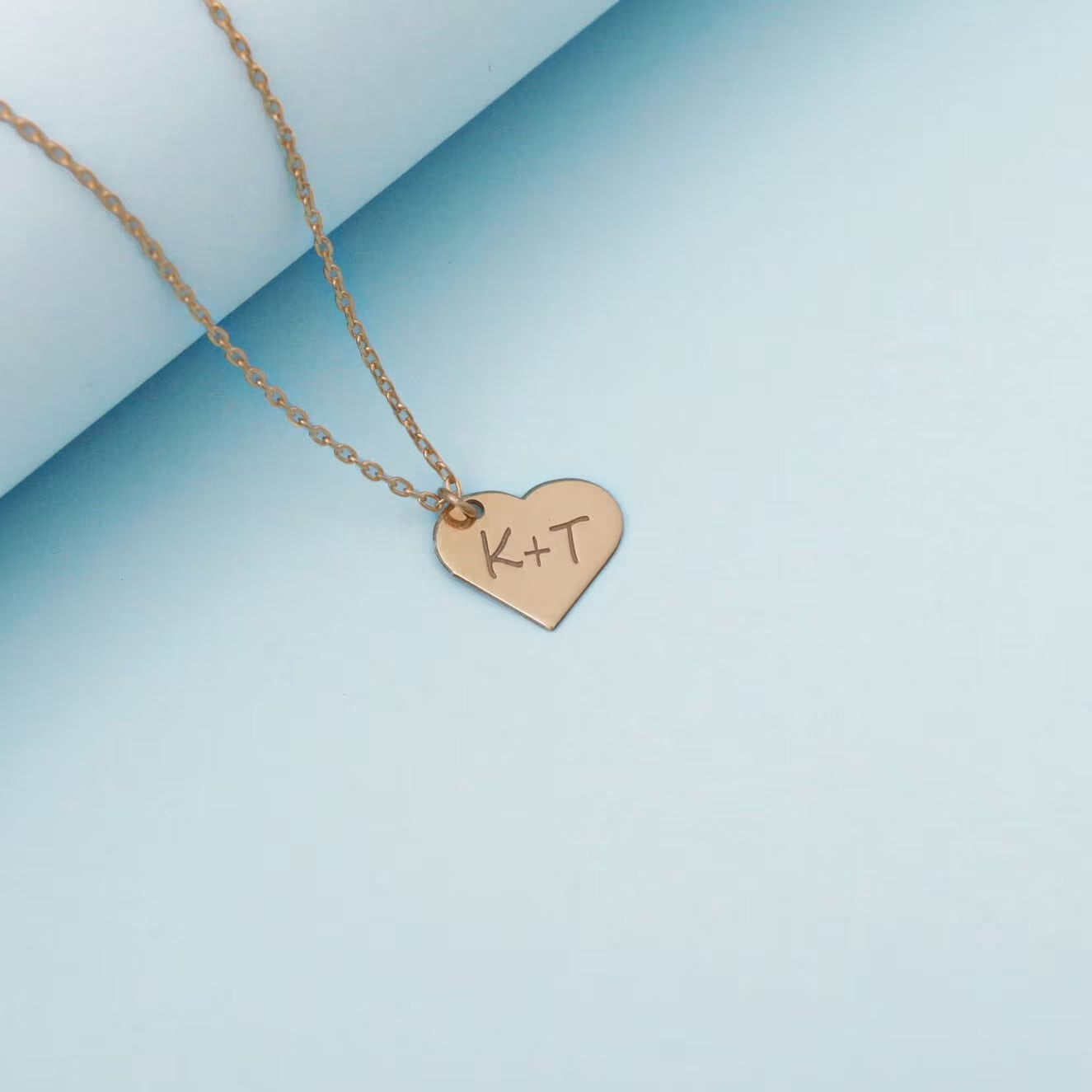 Letter Engraved Heart Necklace in 14K Solid Gold