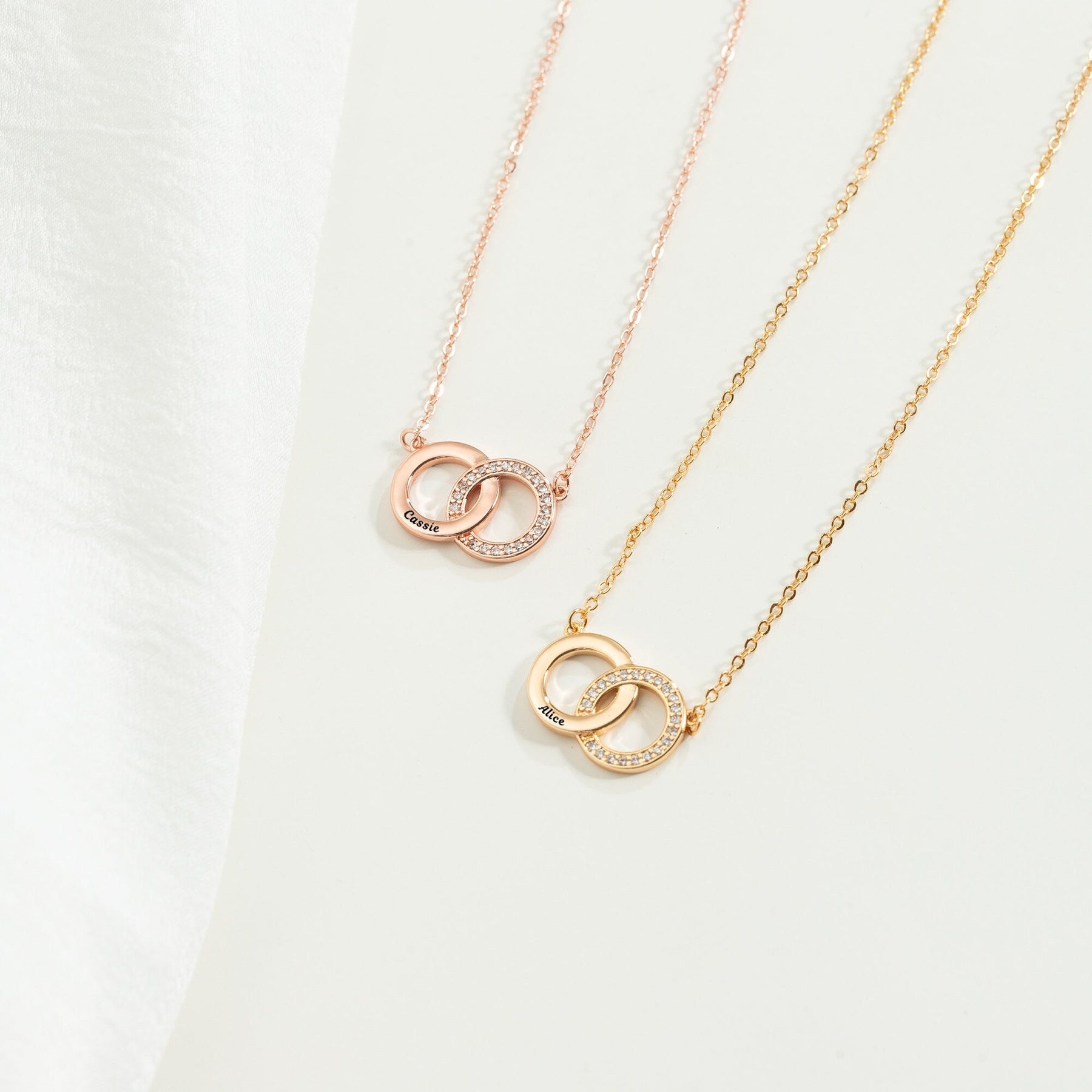 ✥ Celebrate eternal connection with our Round Cut Diamond Interlocking Circle Necklace for Her. This exquisite necklace features two interlocking circles adorned with brilliant round cut diamonds, symbolizing unity and everlasting love. Crafted from high-quality materials for durability and lasting brilliance, it adds a touch of sophistication to any ensemble. Perfect for any occasion, from daily wear to special events, it's a versatile piece that enhances her style with elegance. A perfect gift choice, it represents harmony and timeless beauty, making it a treasured addition to her jewelry collection.