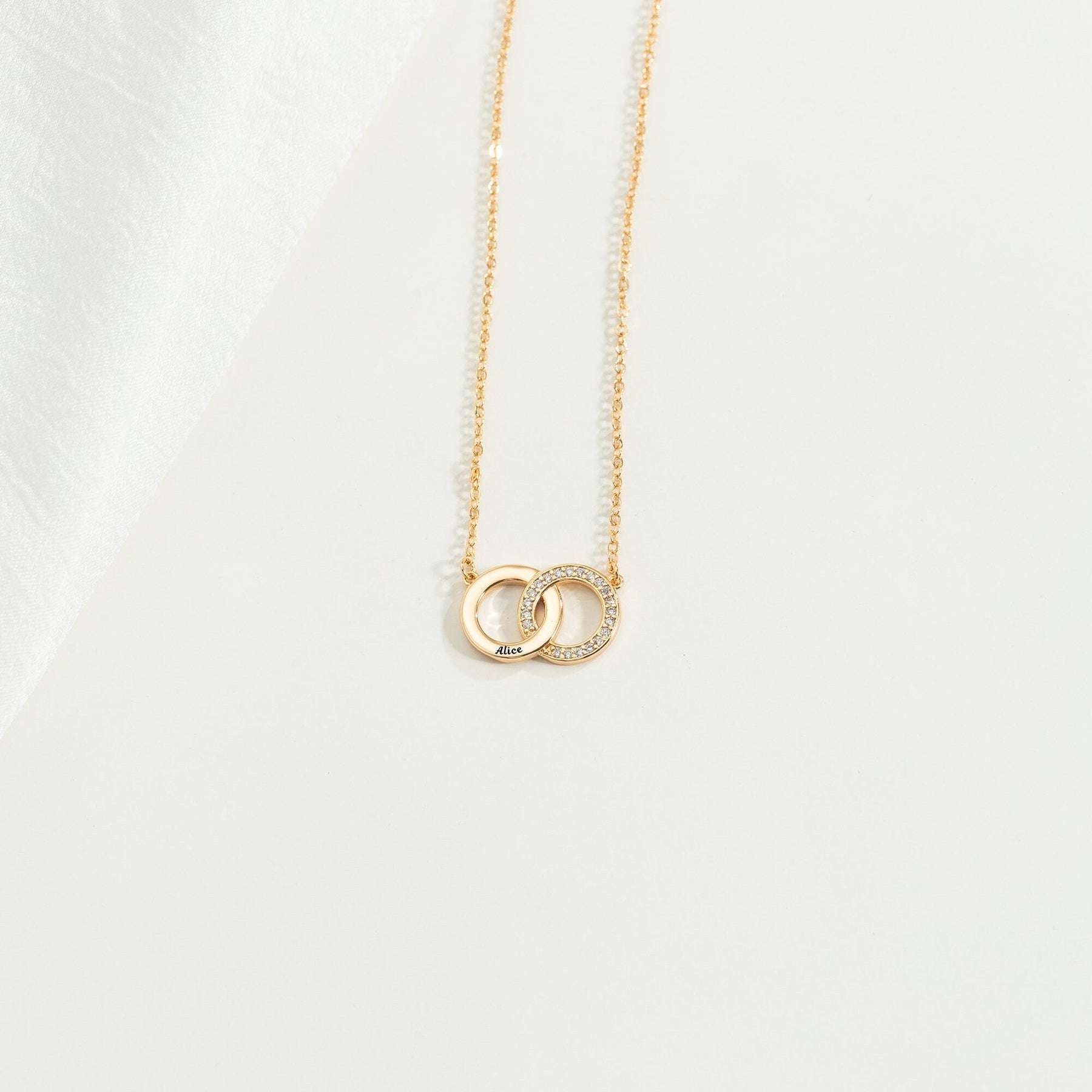 Round Cut Diamond Interlocking Circle Necklace for Her