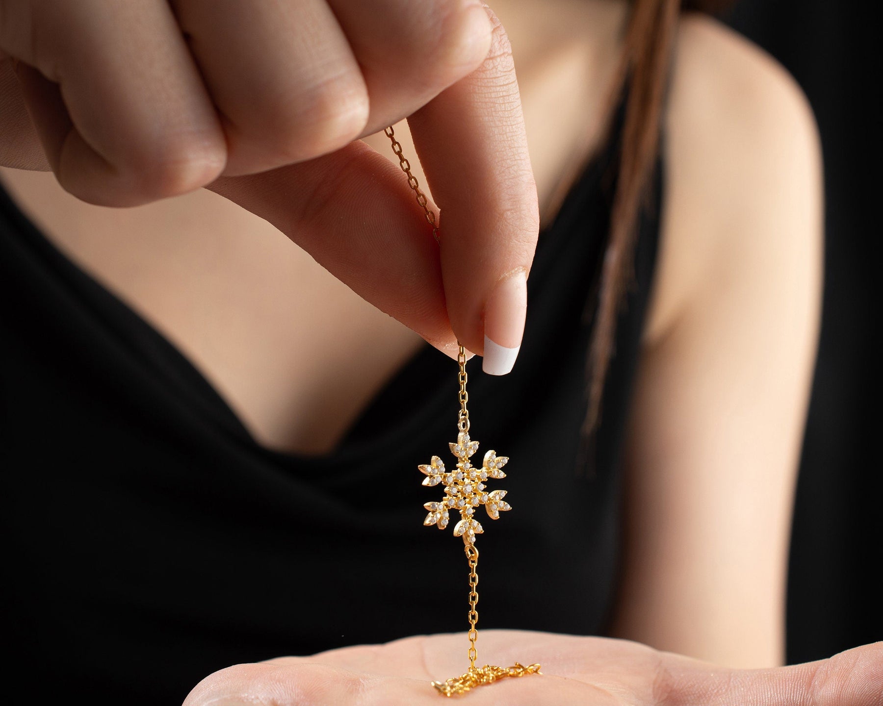 ✥ The enchantment and glitter of the holiday season are embodied in this round cut diamond shining snowflake bracelet, making it the ideal Christmas present. This bracelet, with its sparkling beauty and exquisite snowflake design set with brilliant round cut diamonds, perfectly embodies the elegance of winter. Made from premium fabrics, it elevates any festive ensemble with a hint of luxury. This snowflake bracelet is a timeless addition to any jewelry collection and a memorable and fascinating gift that will light up the Christmas season with its brilliance, whether you're wanting to give yourself or someone special.