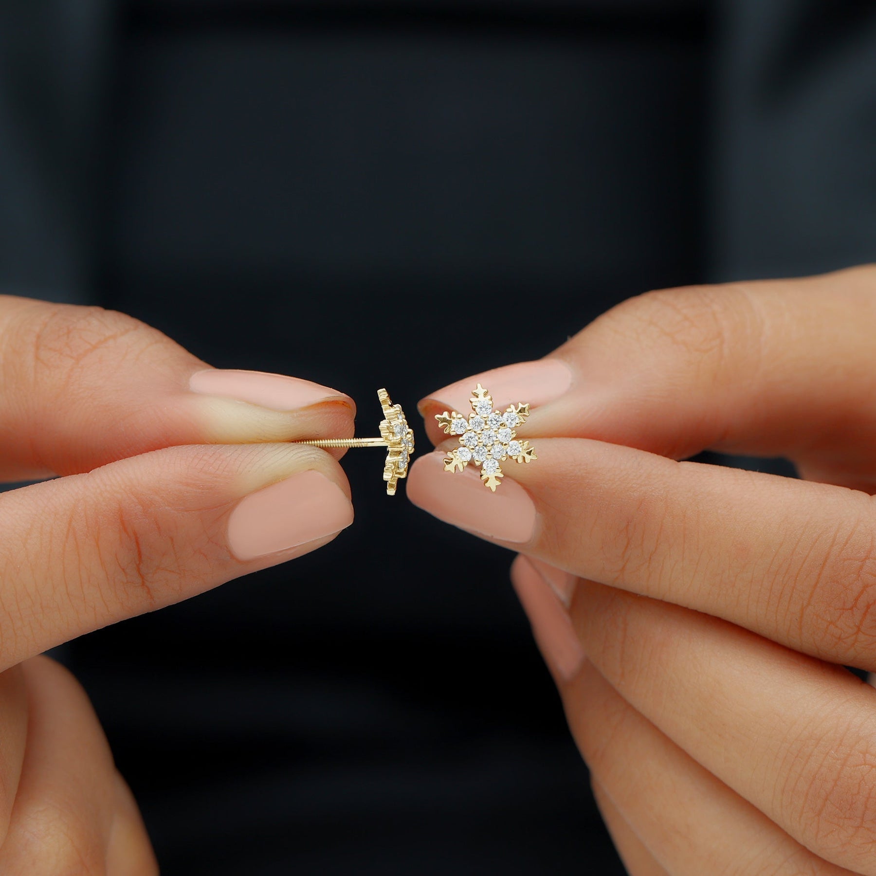 Round Cut Diamond Unique Snowflake Stud for Christmas Gift