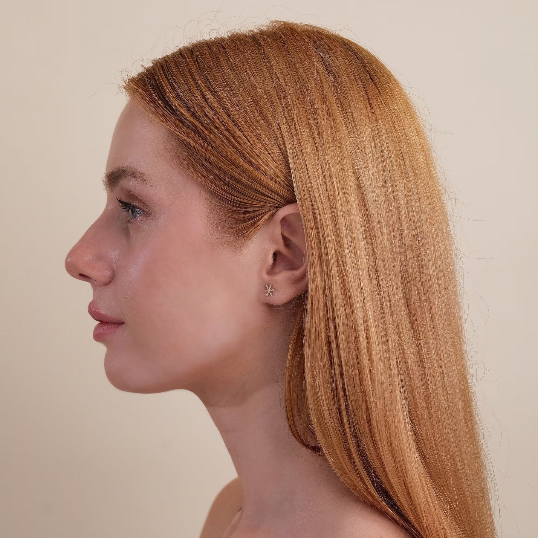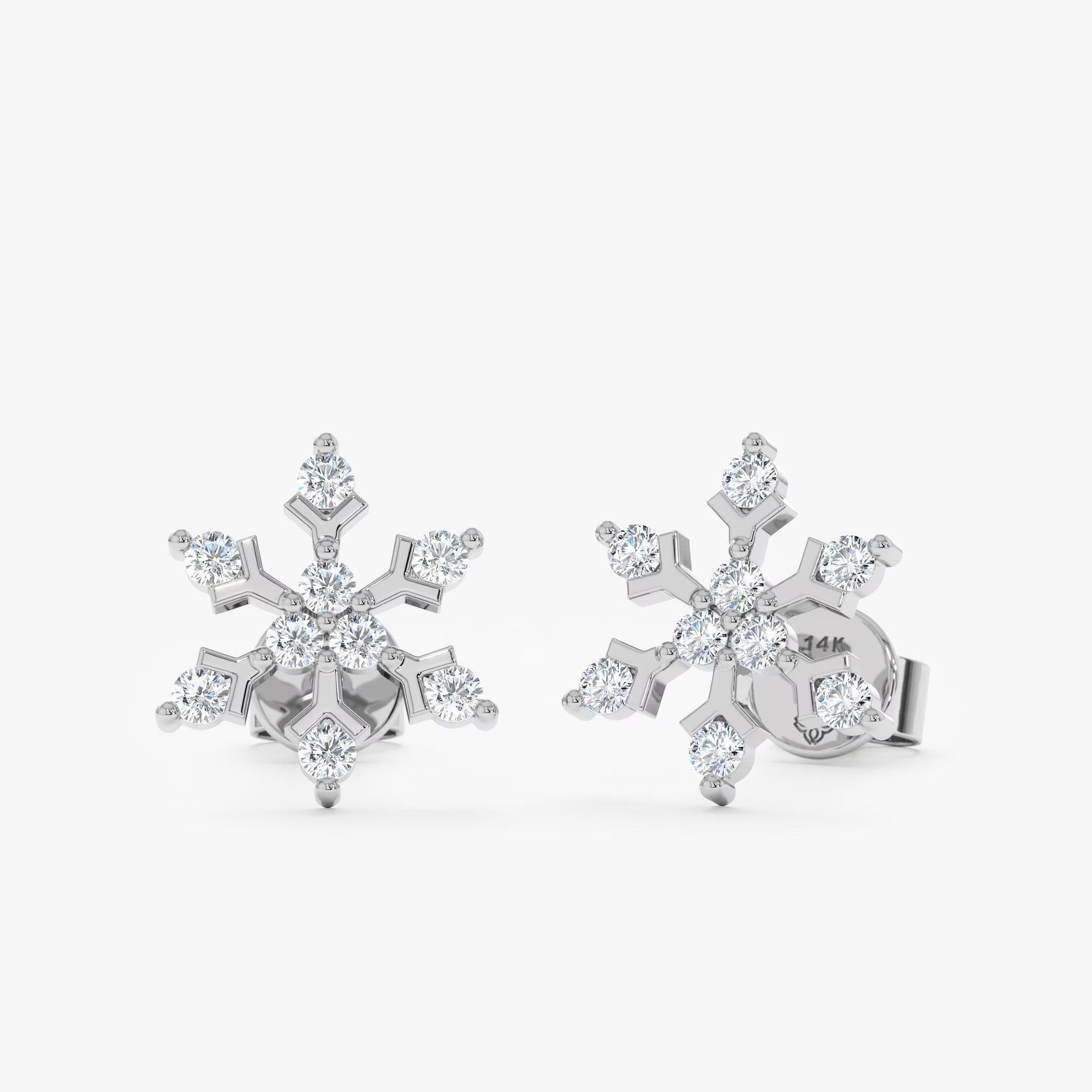 Round Cut Diamond Snowflake Stud Earrings for Birthday Gift