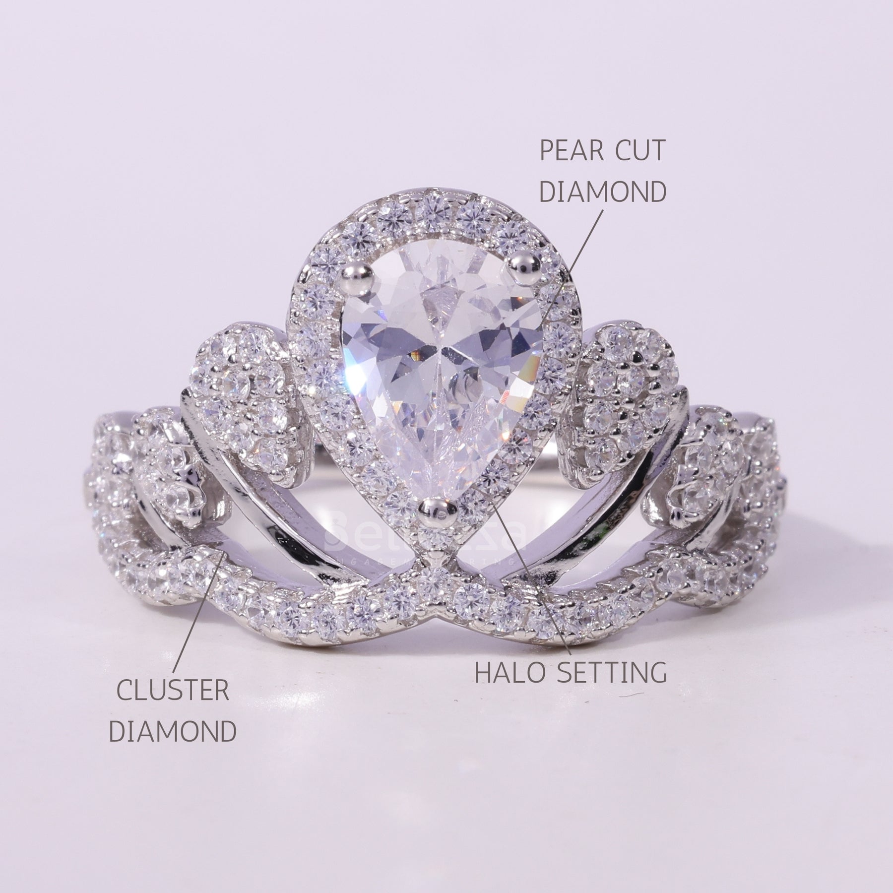 0.50CT Pear Cut Cluster Diamond Moissanite Engagement Ring