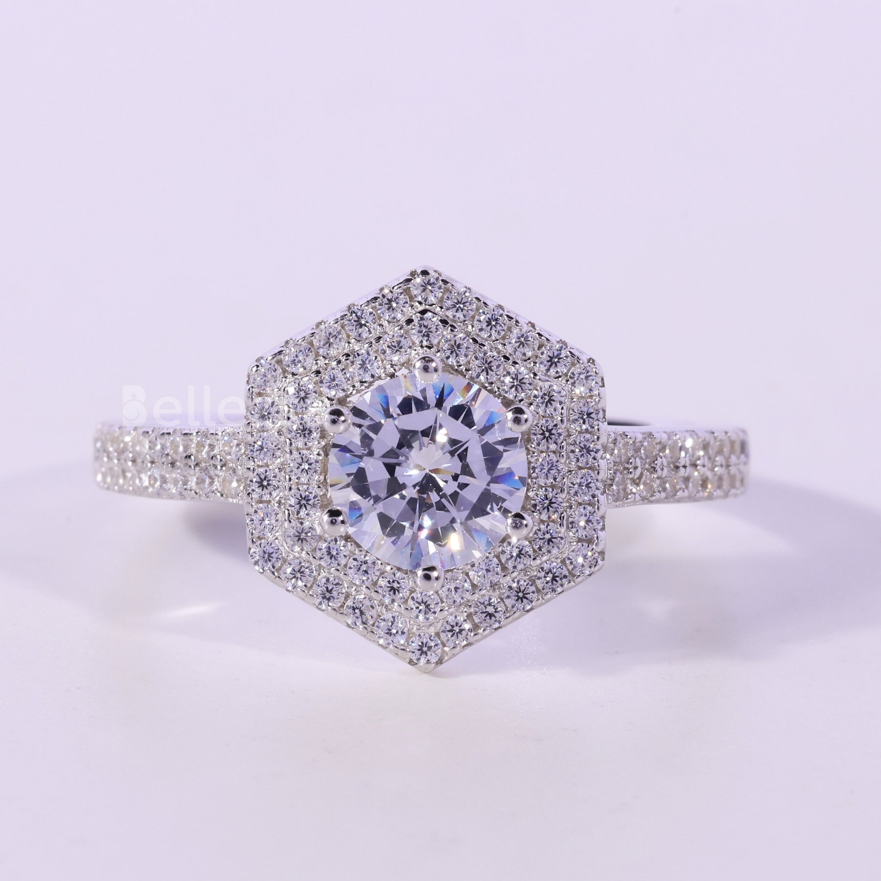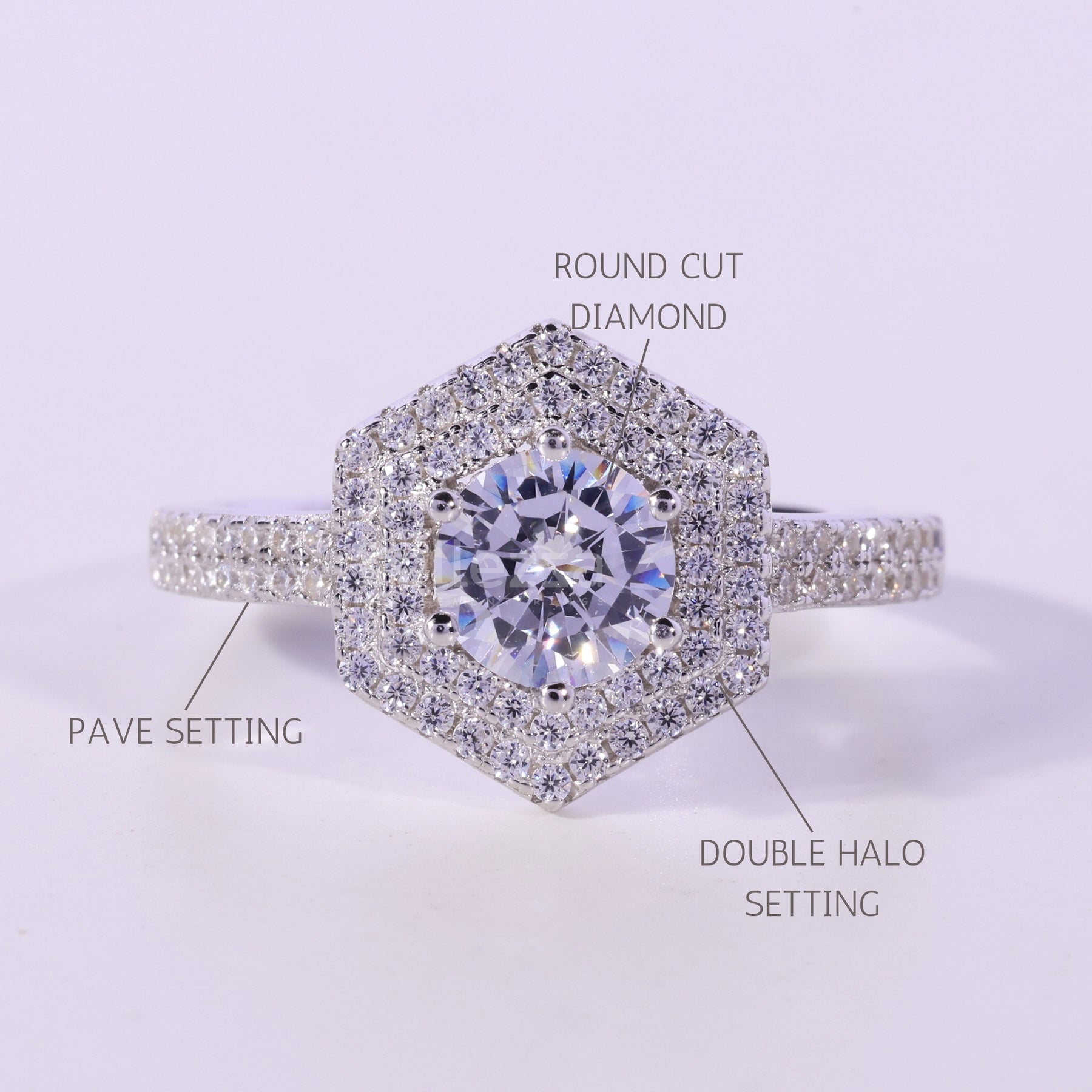 0.50CT Round Cut Double Halo Moissanite Engagement Ring