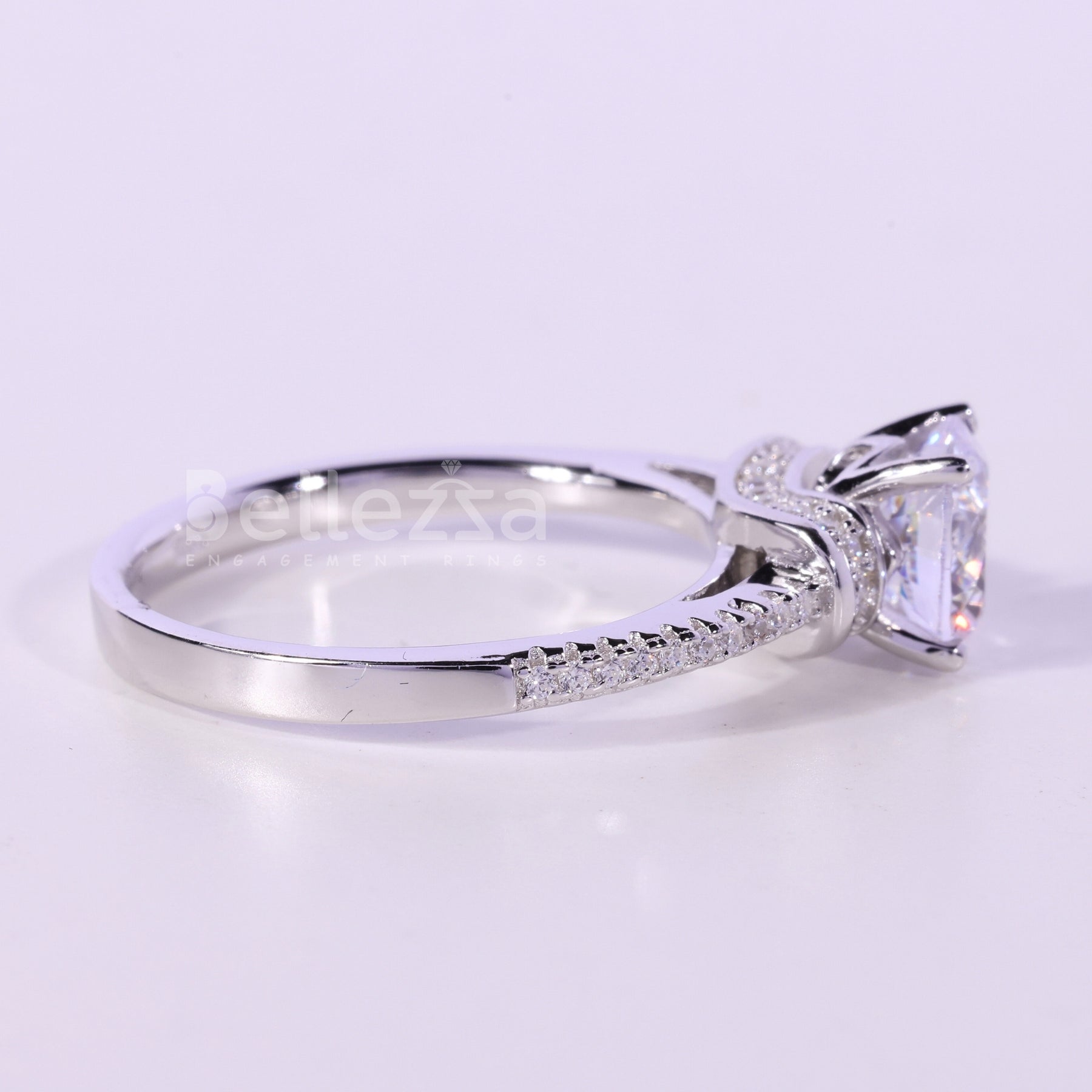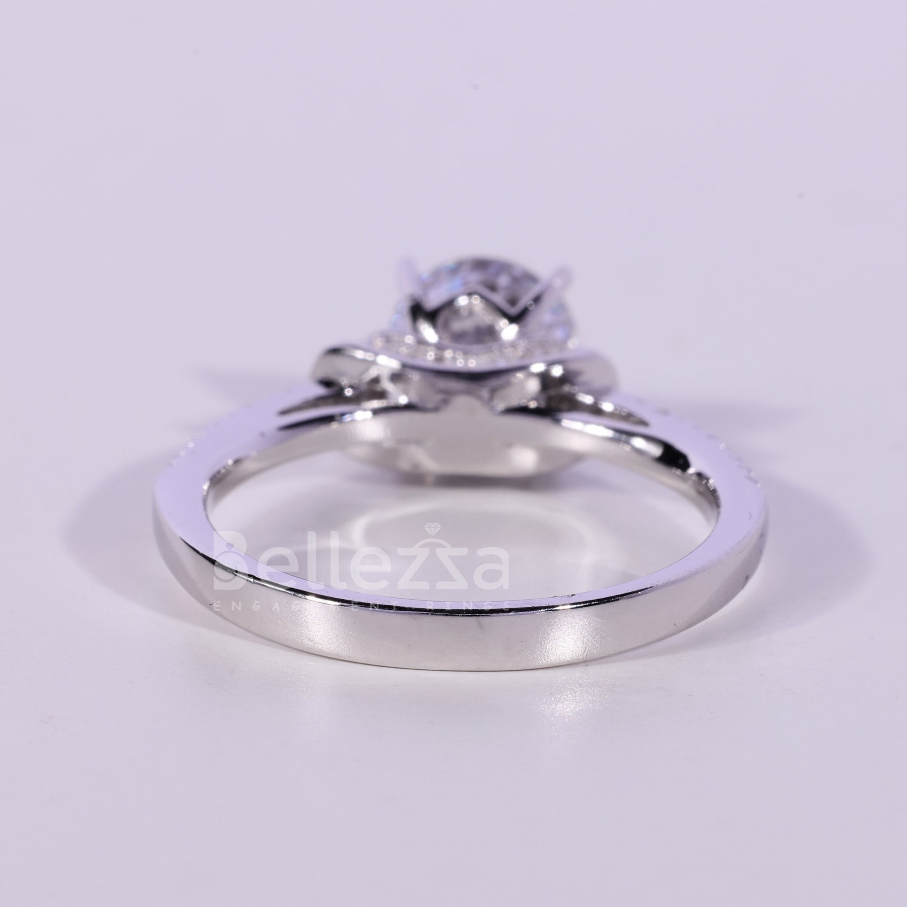 0.75CT Round Cut Diamond Pave Setting Moissanite Engagement Ring