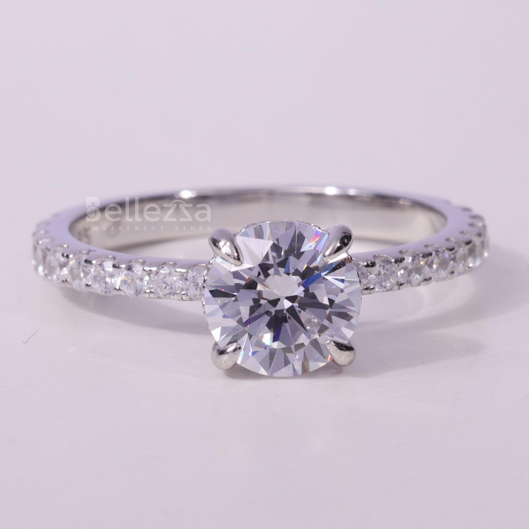 0.75CT Round cut Pave Setting Moissanite Engagement Ring