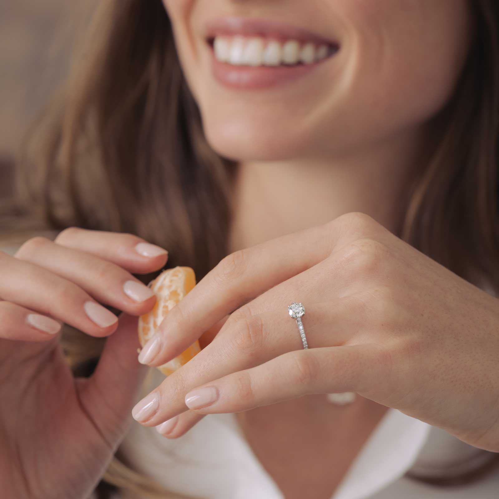 0.80 CT Round Shaped Moissanite Pave Setting Engagement Ring