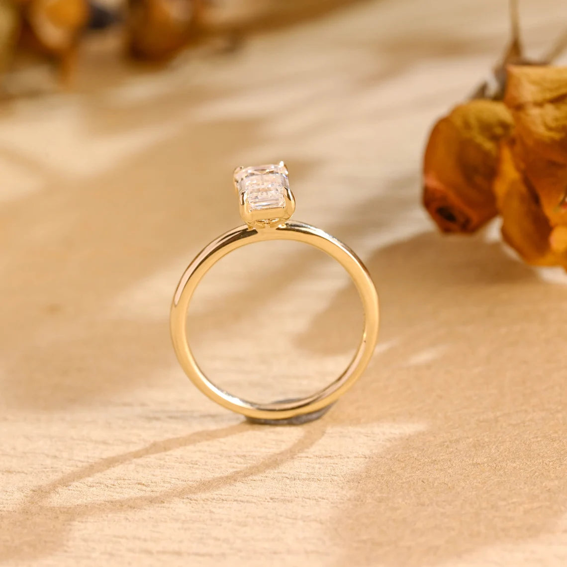 1.50 CT Elongated Emerald Cut Solitaire Moissanite Engagement Ring