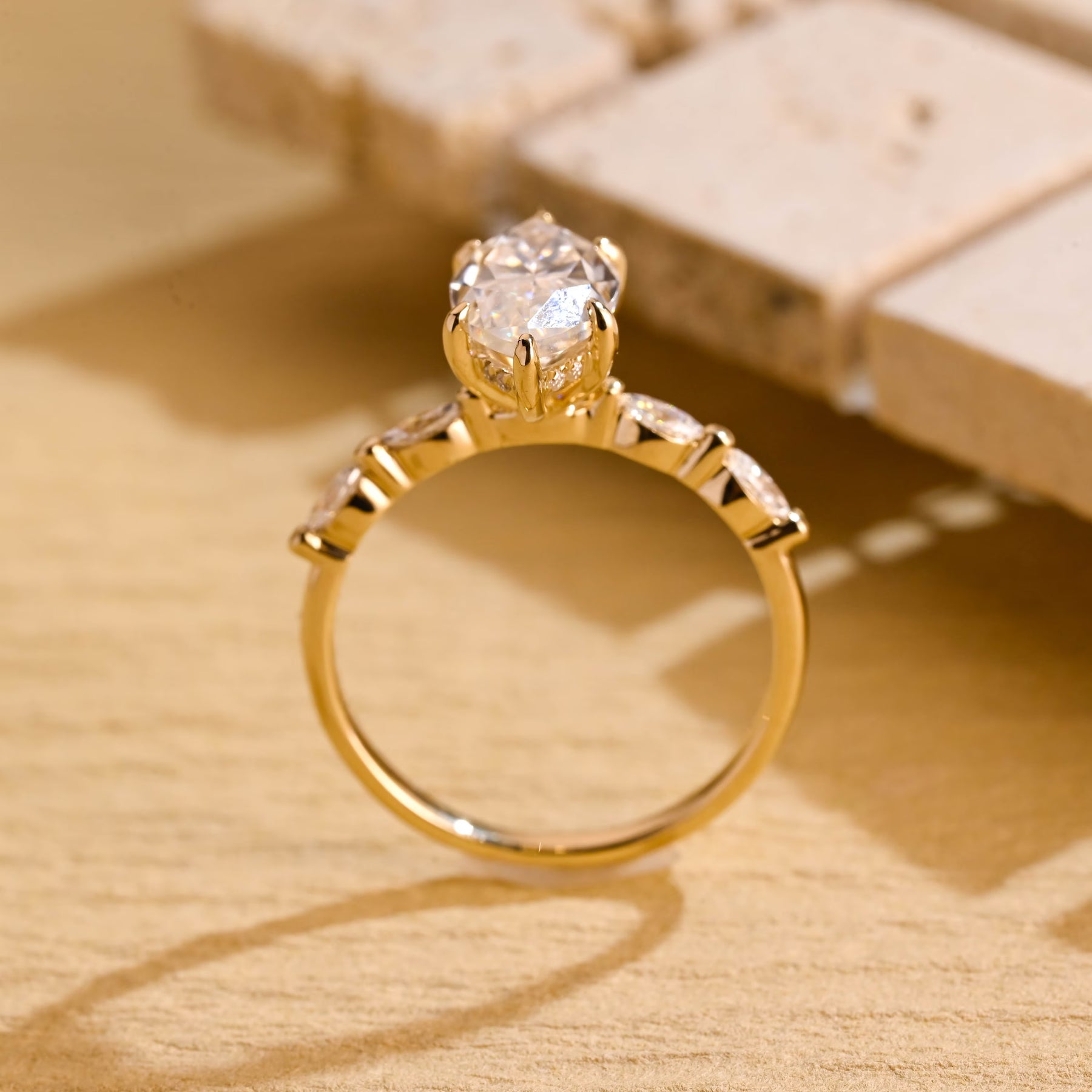 3.0 CT Marquise Cut Hidden Halo Moissanite Engagement Ring
