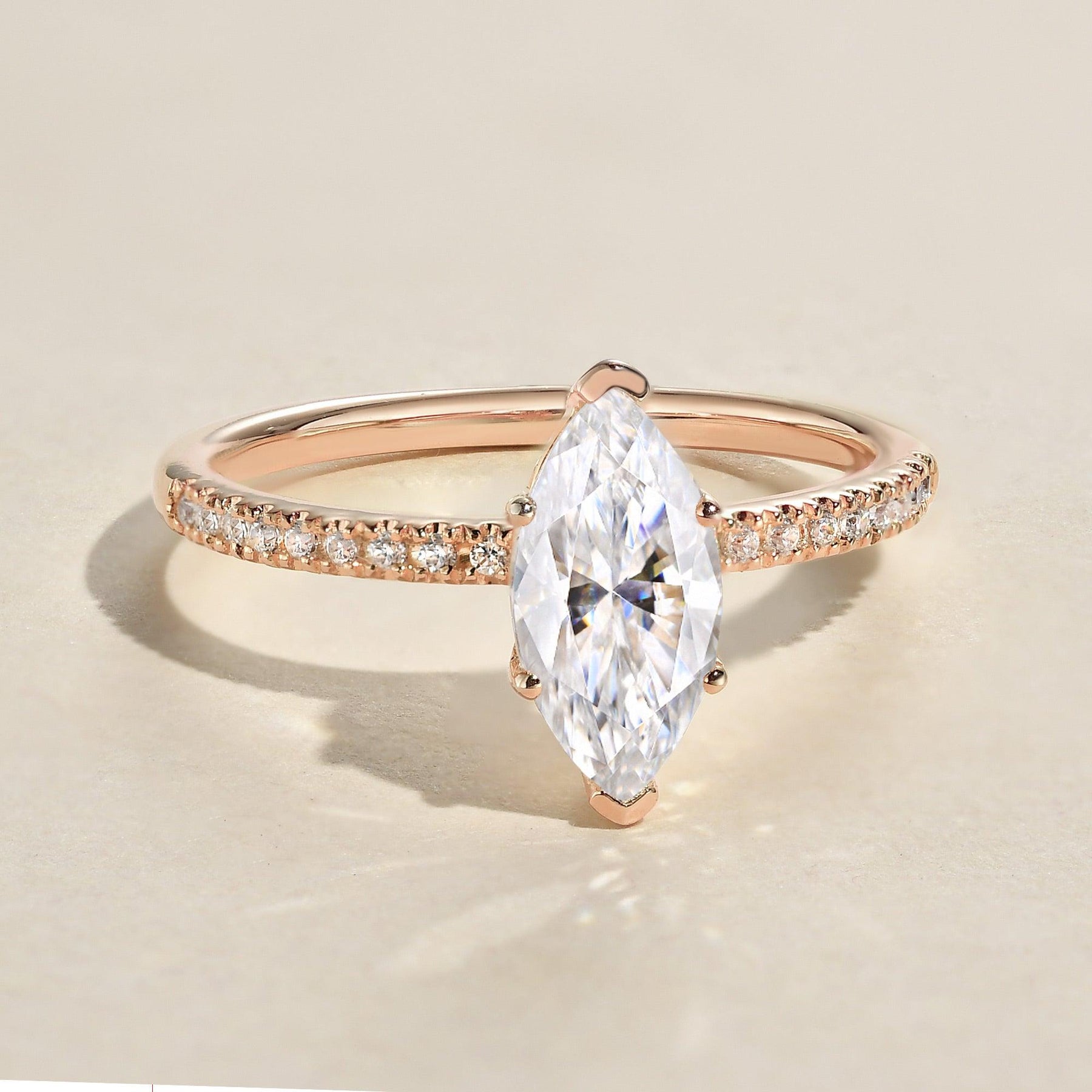 1.0 CT Marquise Cut Solitaire Pave Moissanite Engagement Ring