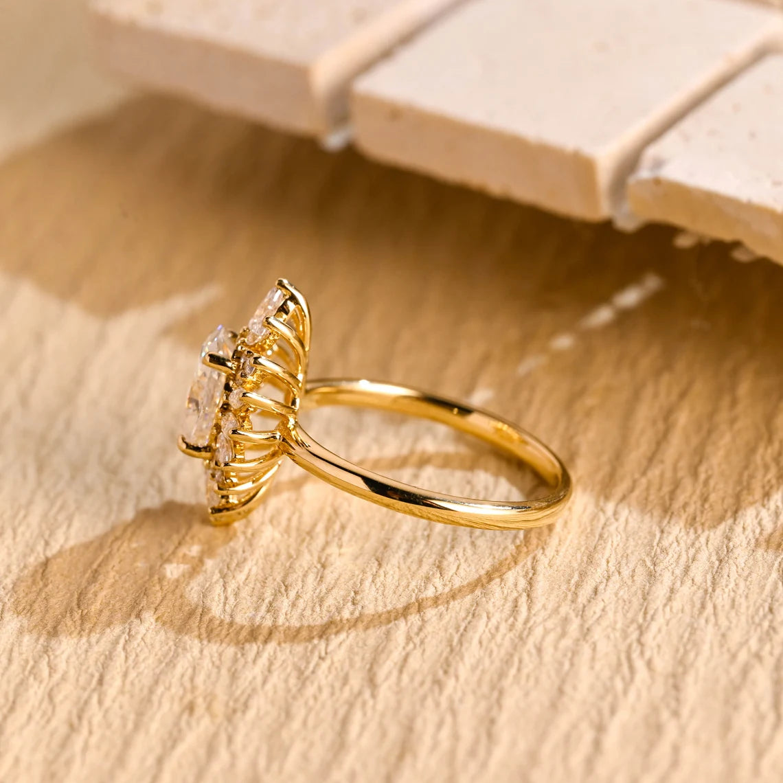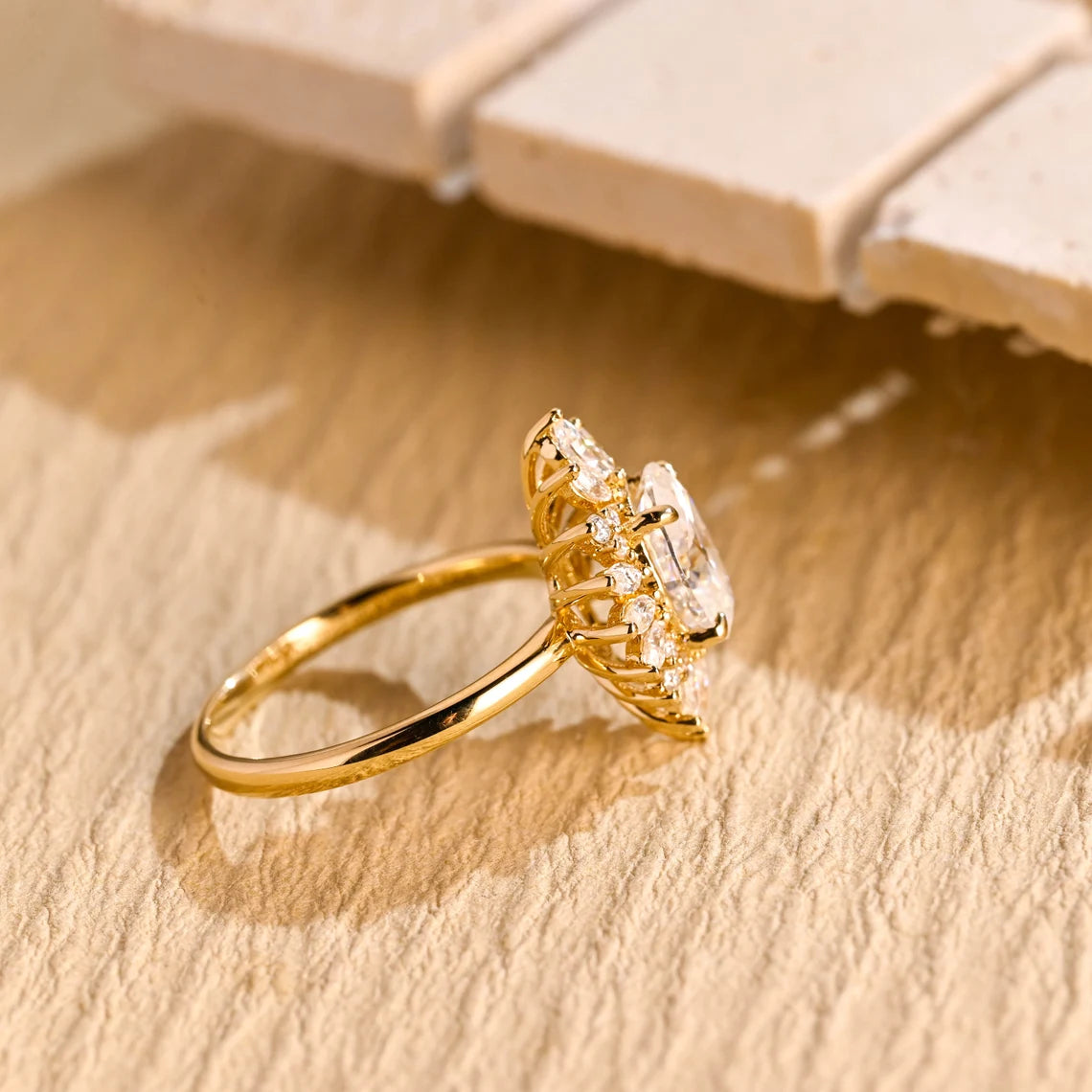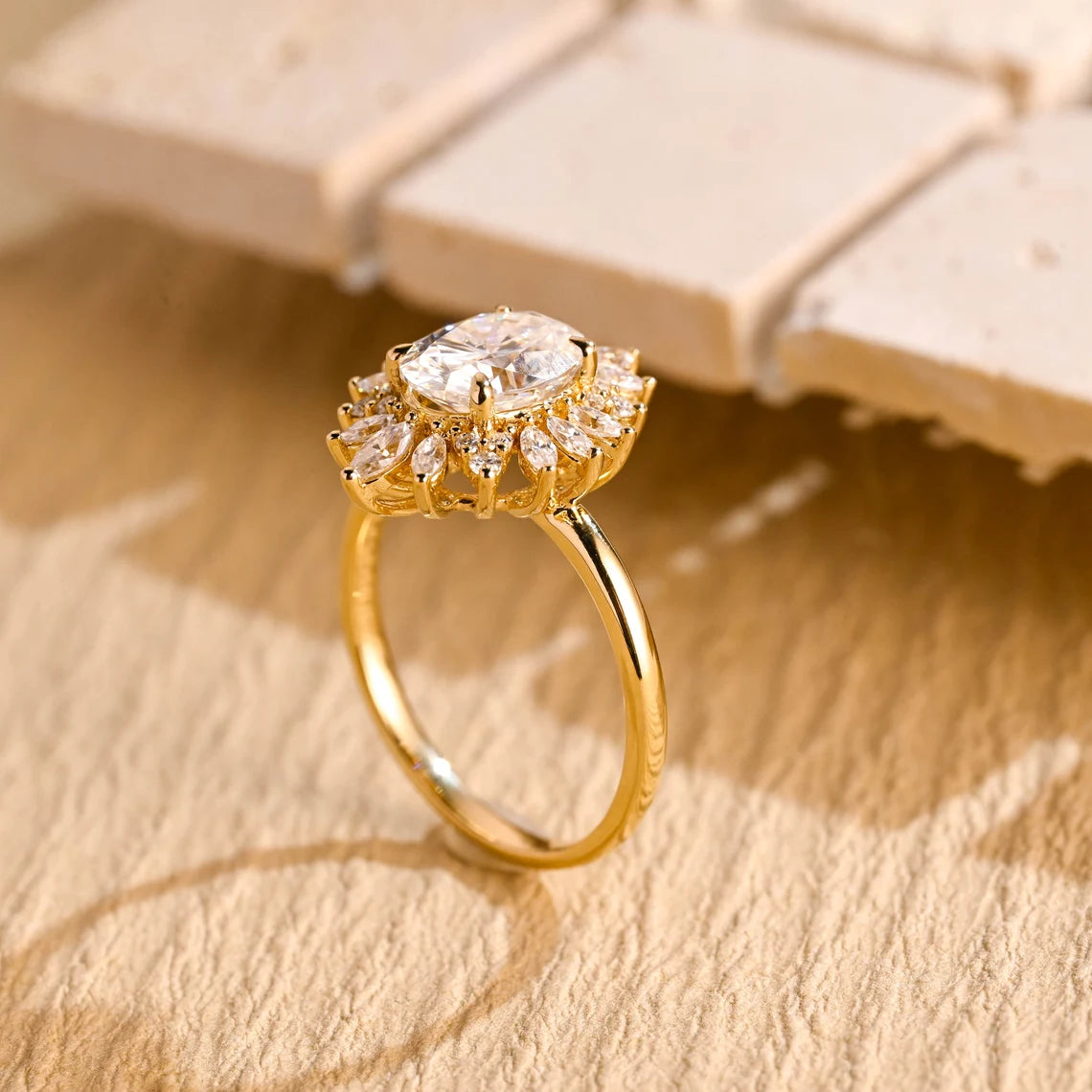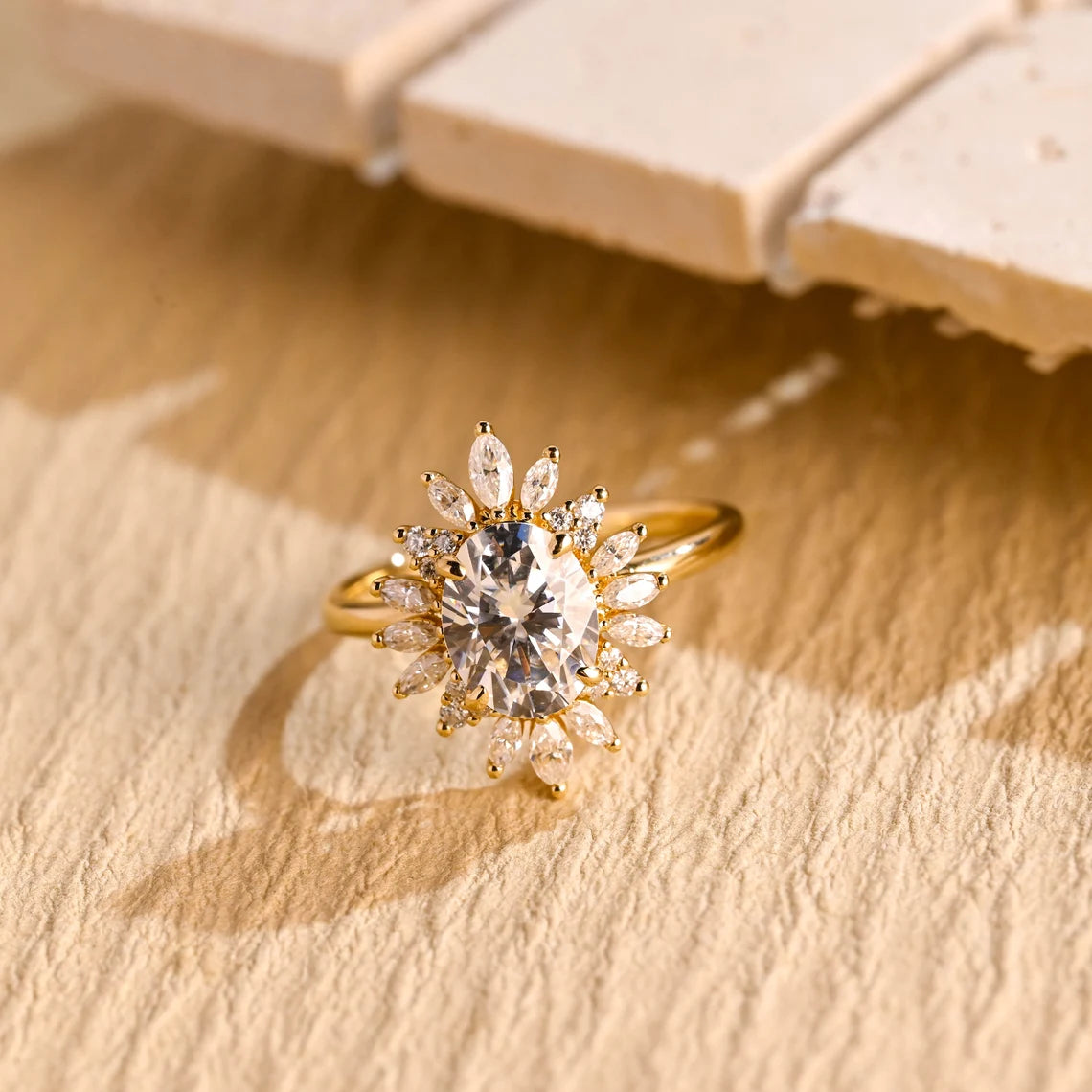 2.0 CT Oval Cut Cluster Diamond Moissanite Engagement Ring