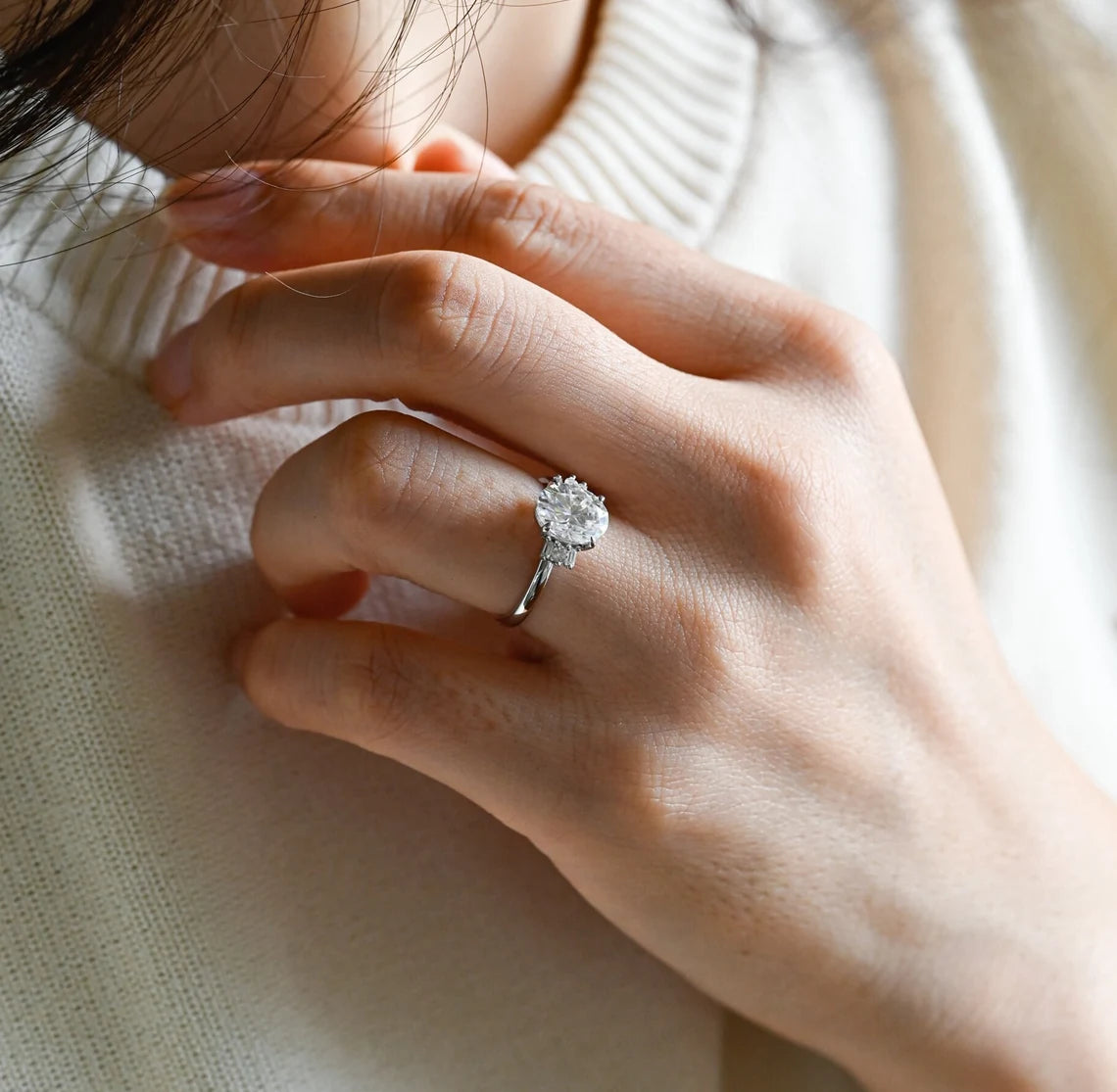1.50 CT Oval Cut Cluster Diamond Moissanite Engagement Ring