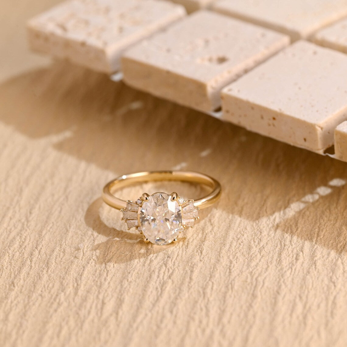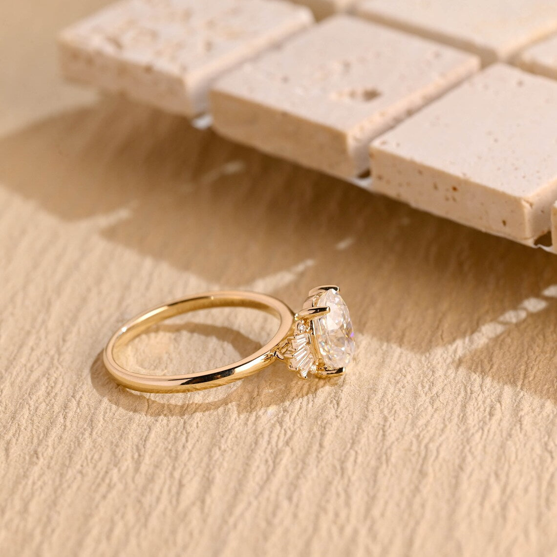 1.50 CT Oval Cut Cluster Diamond Moissanite Engagement Ring