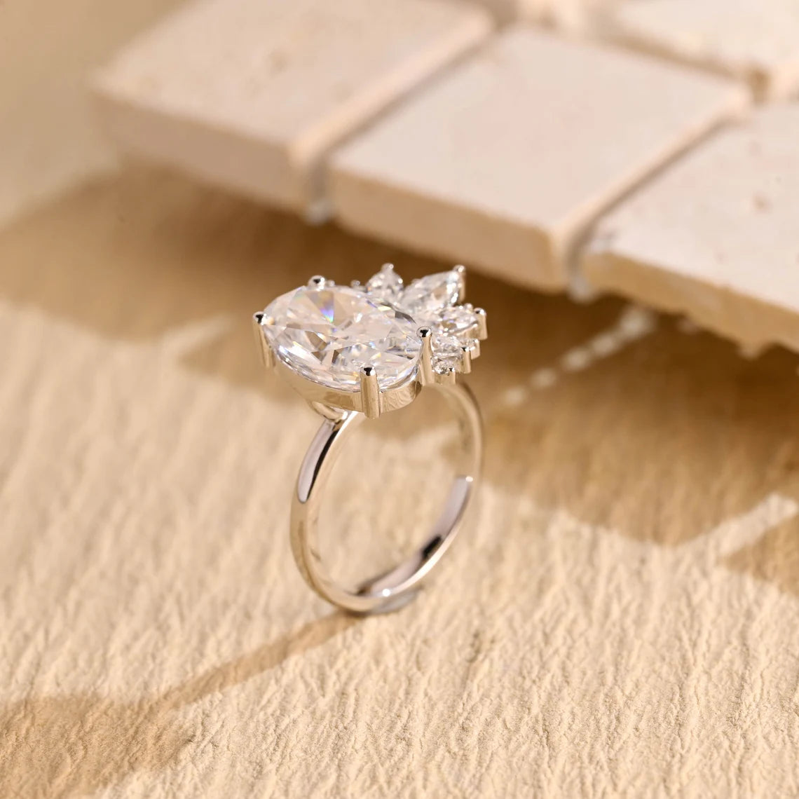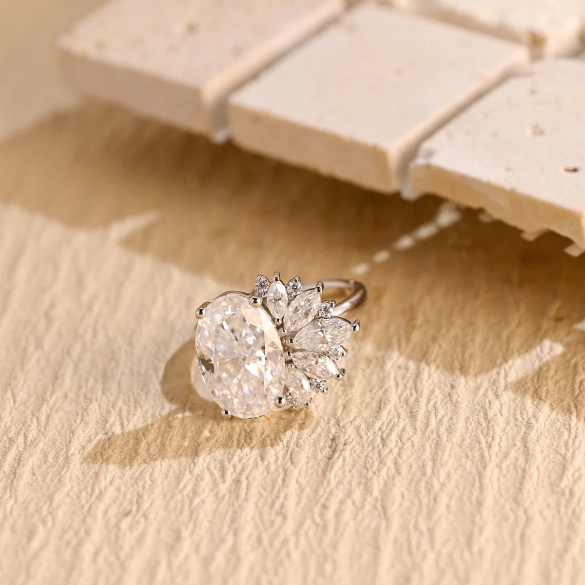 3.50 CT Oval Cut Cluster Diamond Moissanite Engagement Ring
