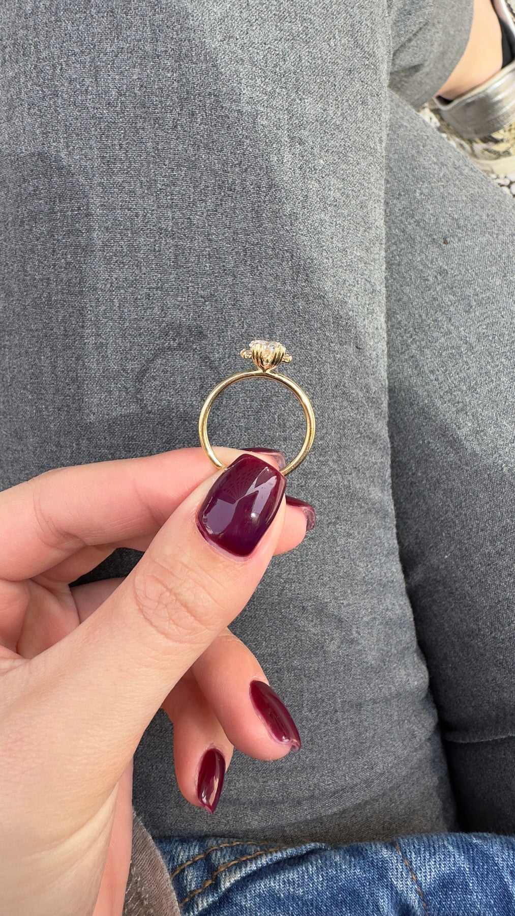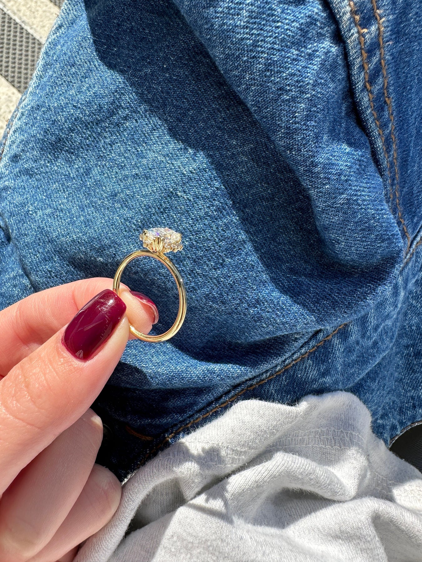 1.0 CT Oval Cut Moissanite Cluster Halo Engagement Ring