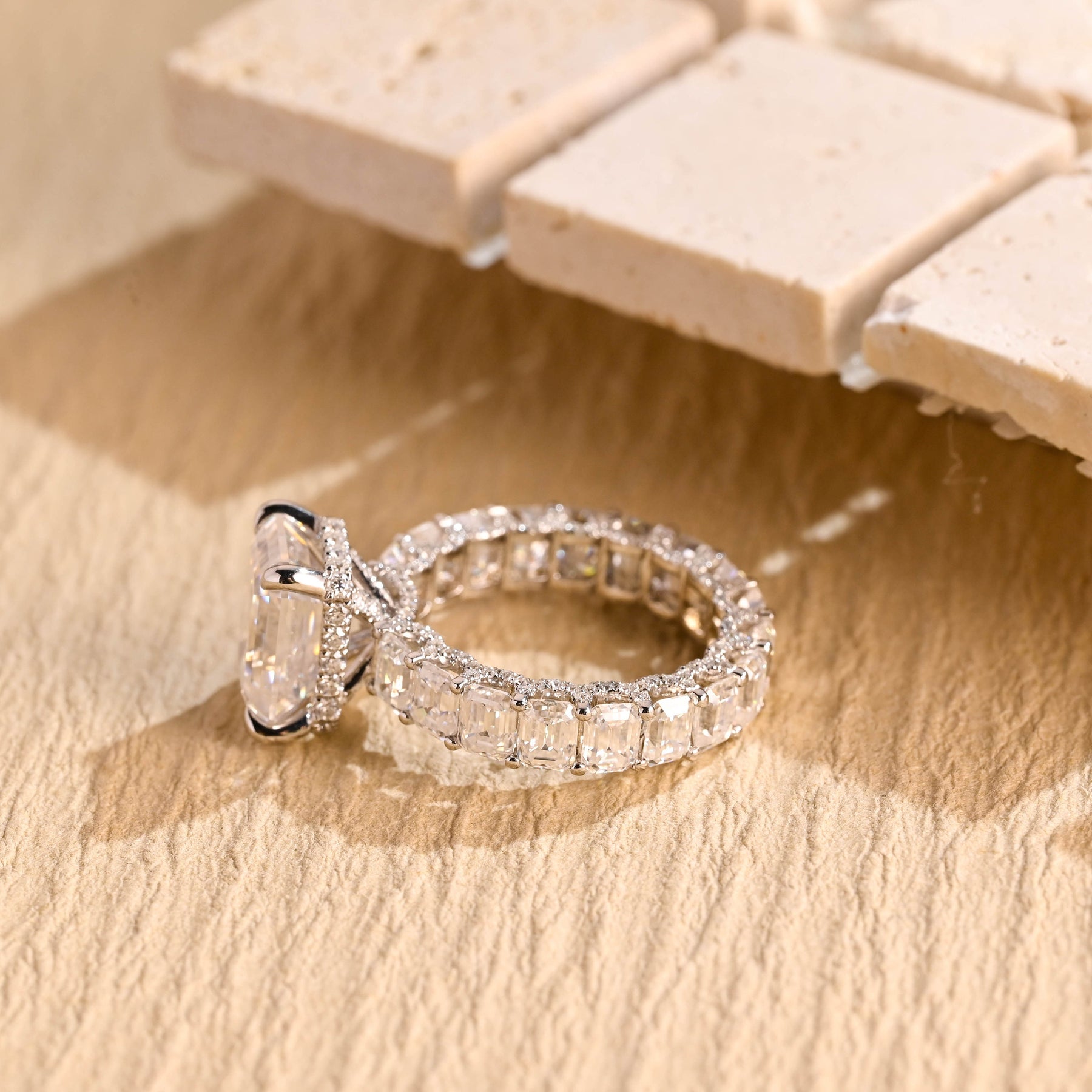 1.50CT Emerald Cut Pave Setting Full Eternity Moissanite Engagement Ring