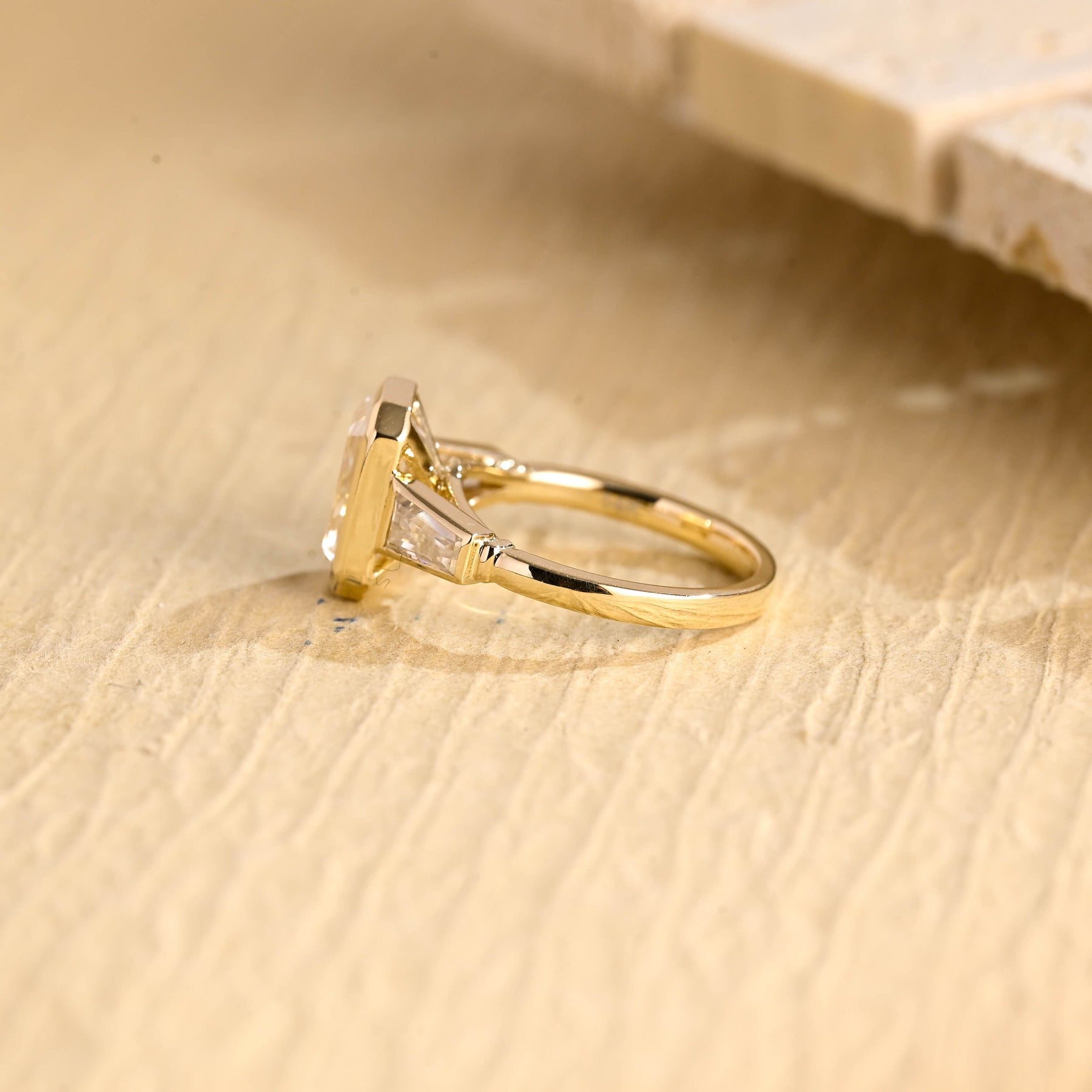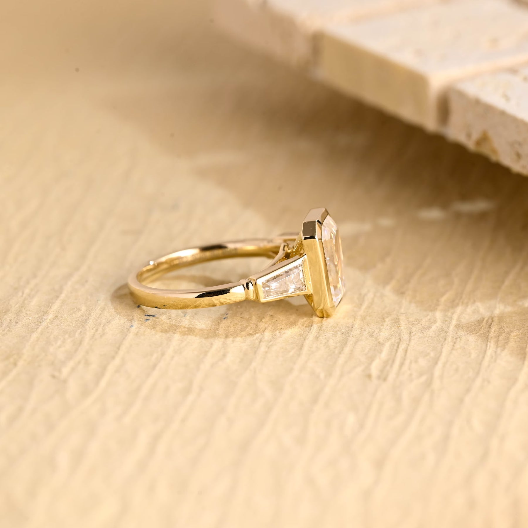 3.0CT Emerald Cut Bezel Setting Trilogy Moissanite Engagement Ring
