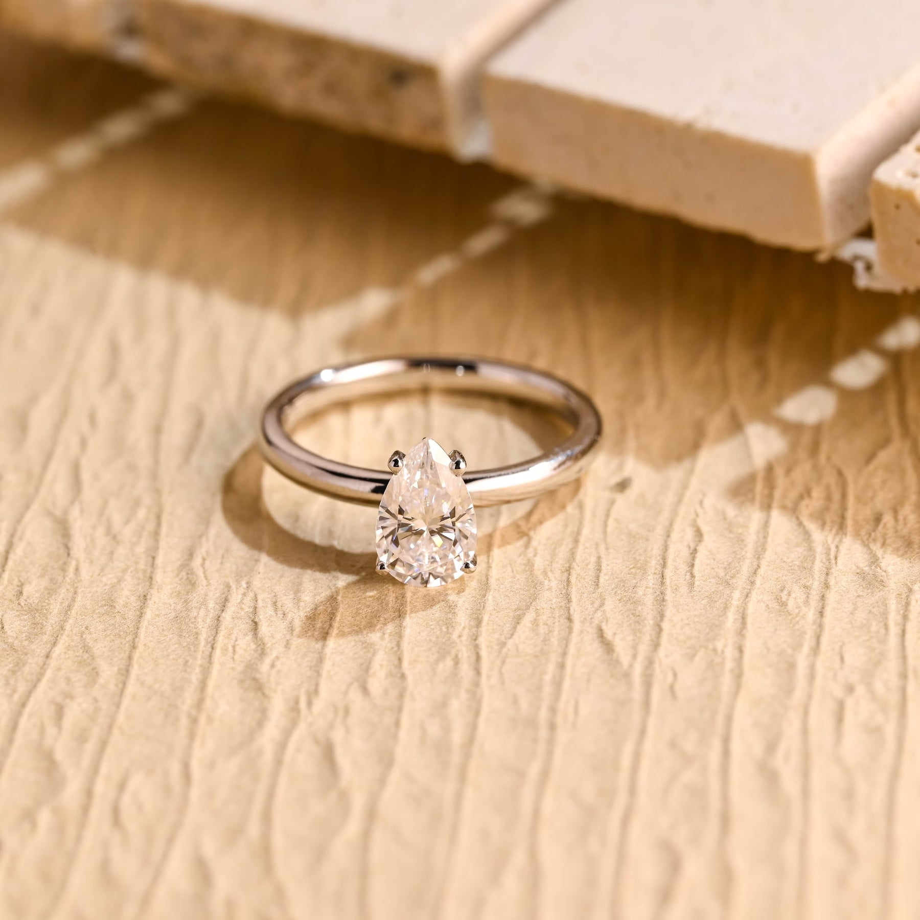 1.0 CT Pear Cut Solitaire Diamond Moissanite Engagement Ring