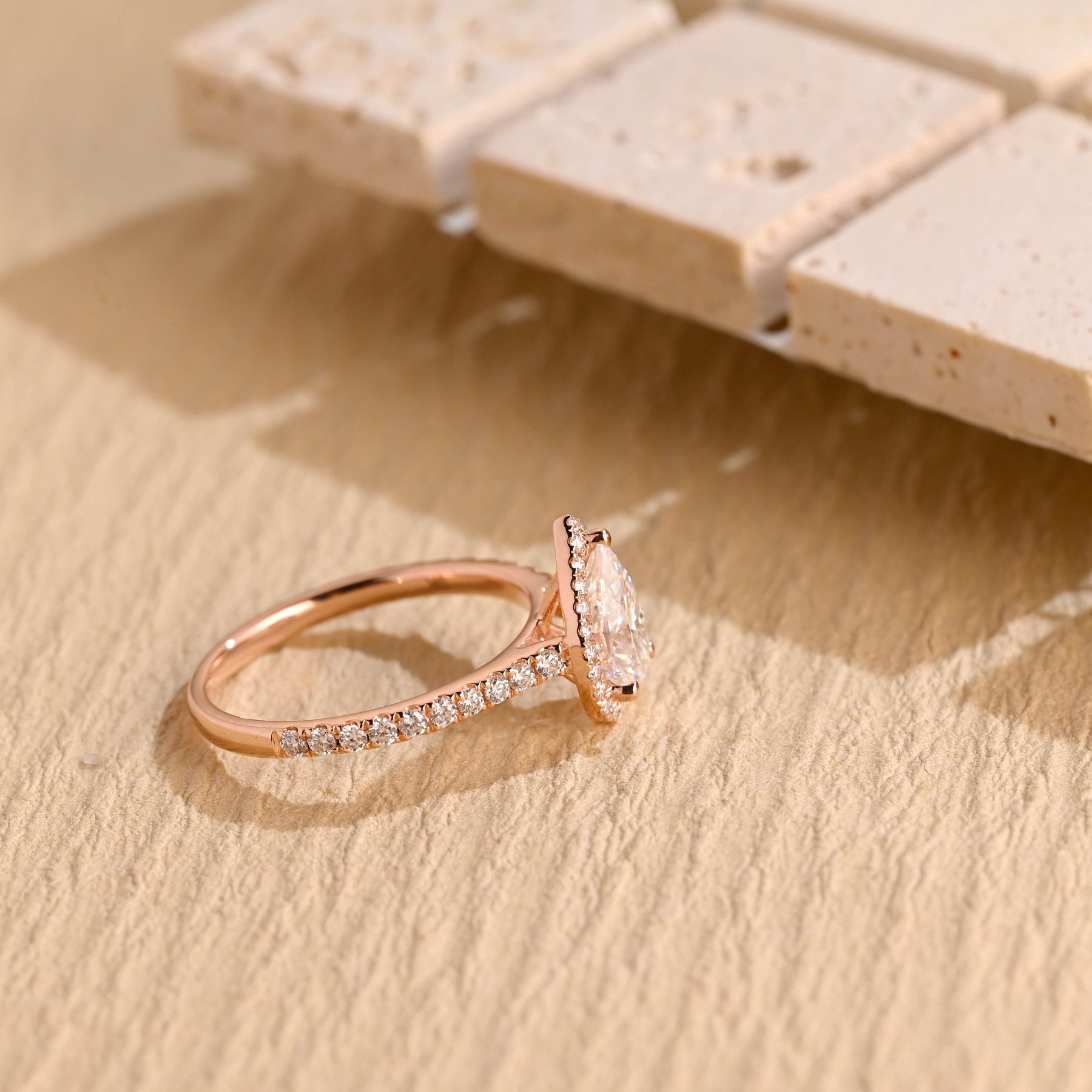 1.0 CT Pear Diamond Halo Diamond Moissanite Engagement Ring