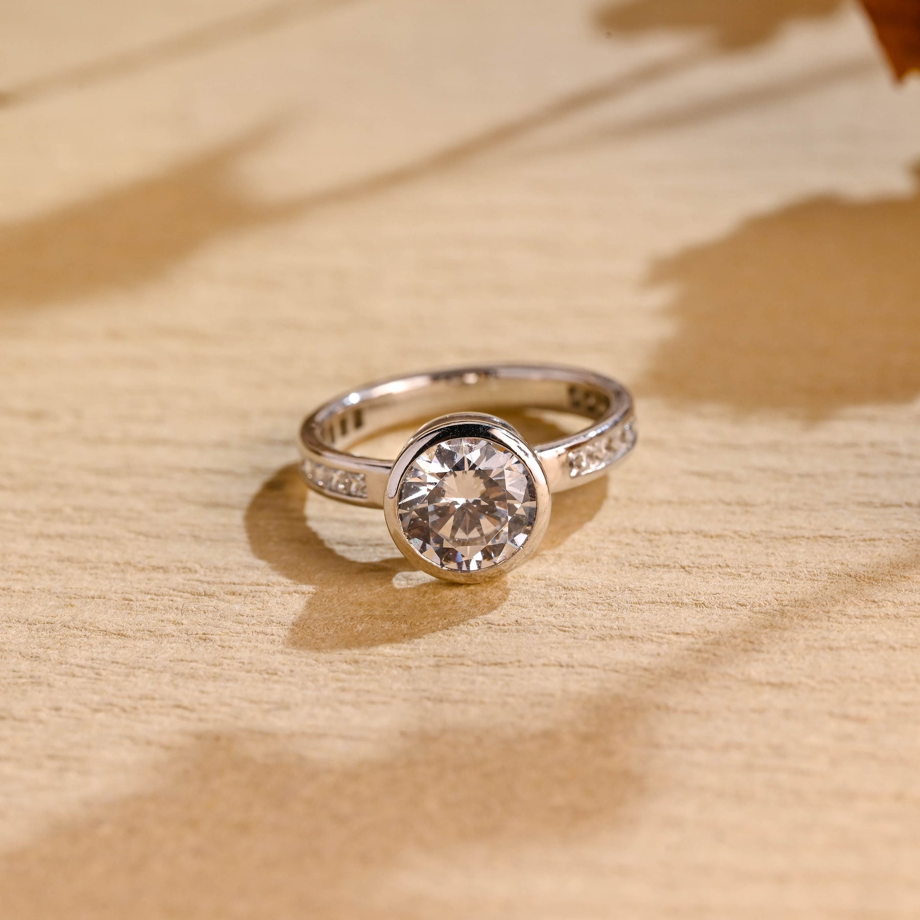 1.50 CT Round Brilliant Bezel Setting Moissanite Engagement Ring