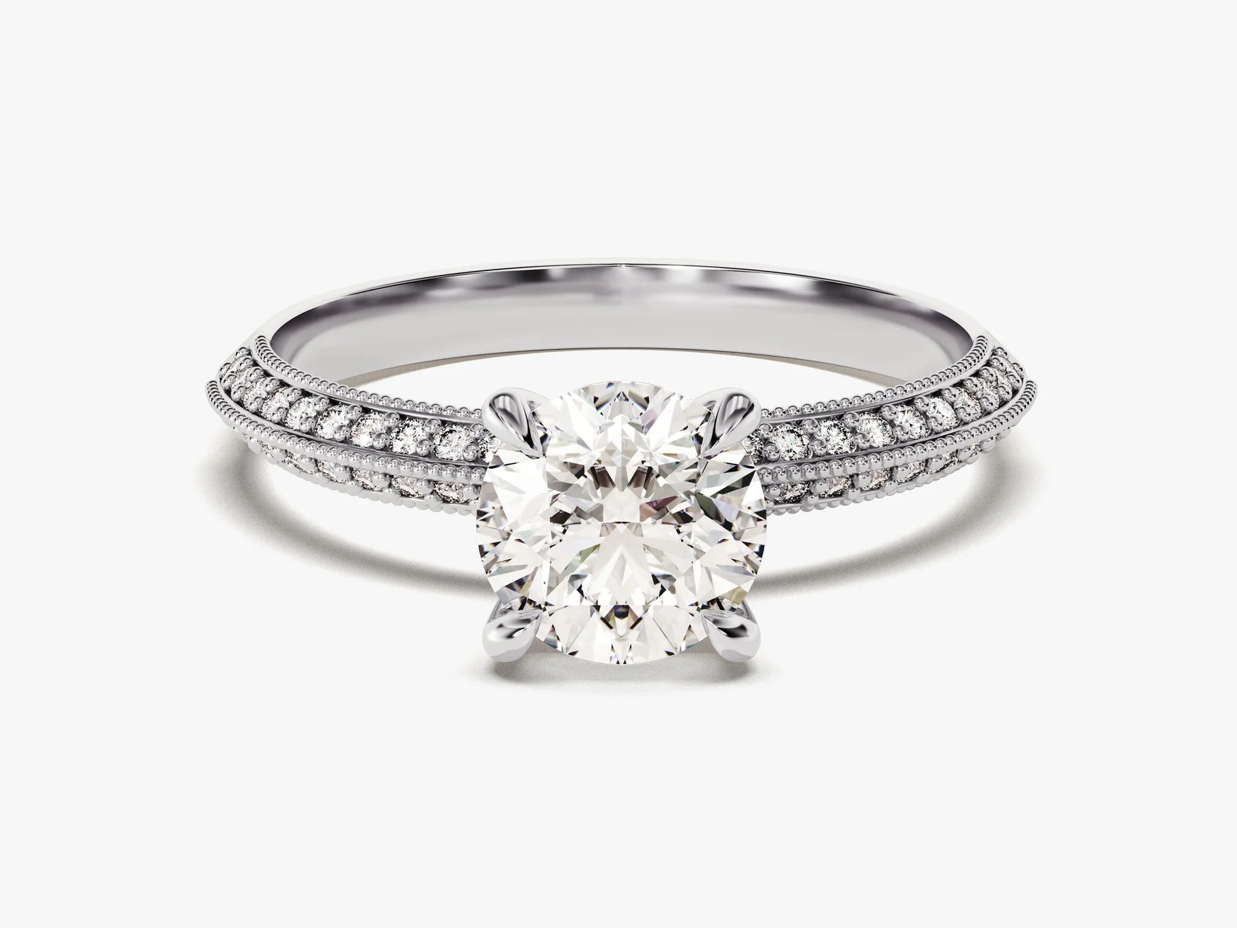 1.0 CT Round Cut Knife Edge Milgrain Pave Set Moissanite Engagement Ring