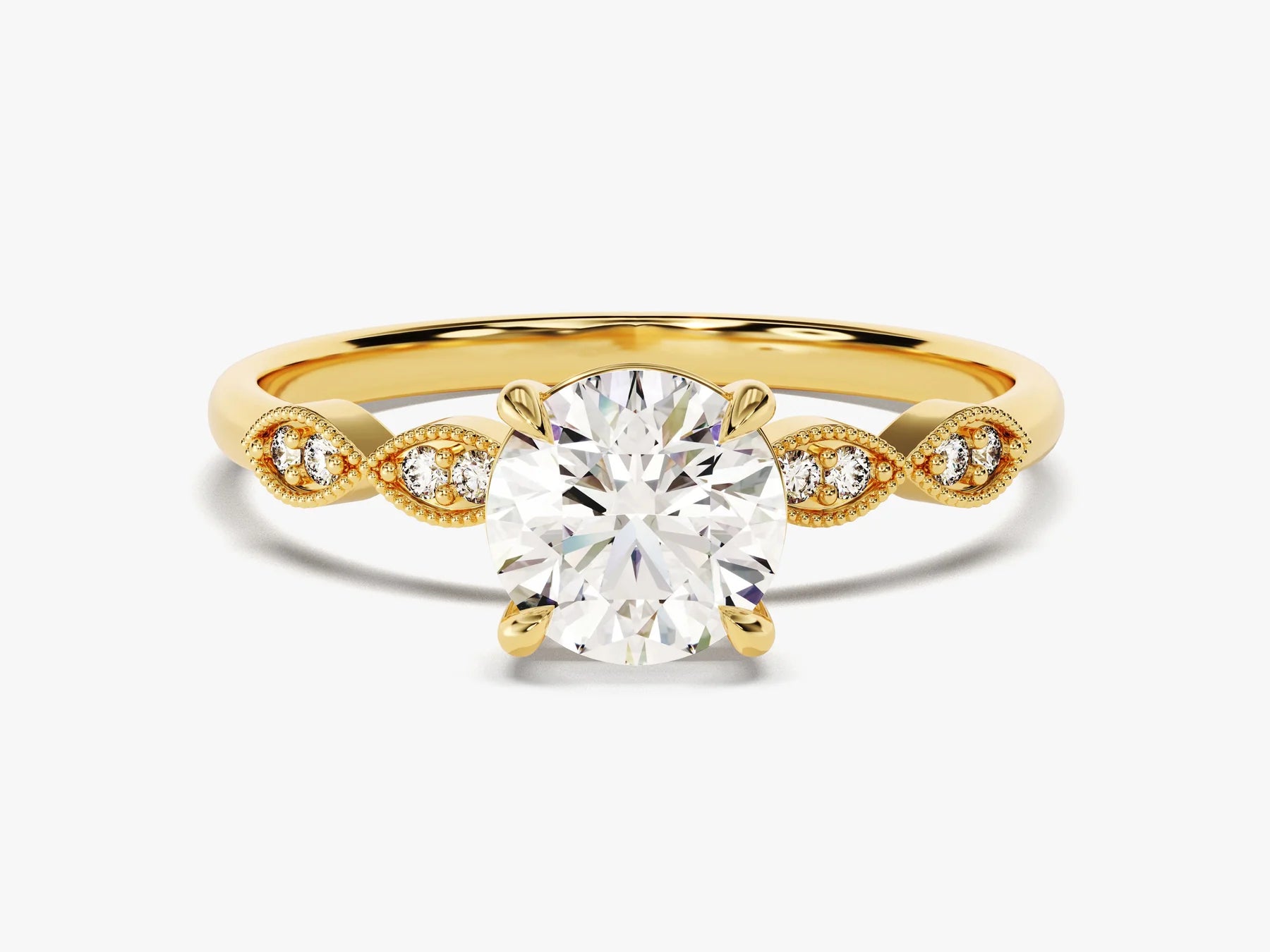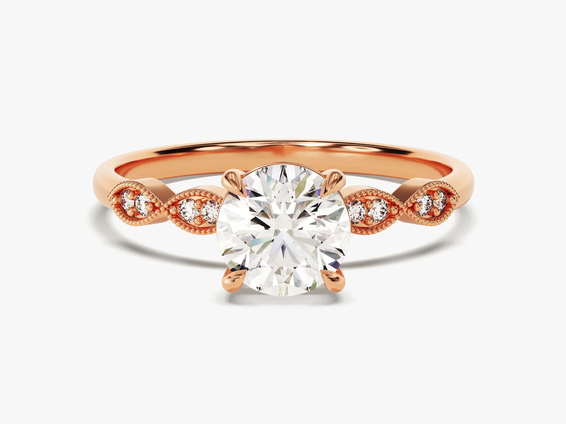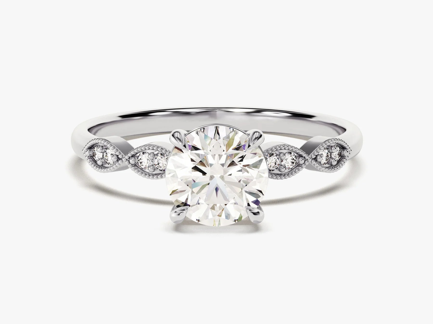 1.0 CT Round Diamond Milgrain Pave Setting Moissanite Engagement Ring