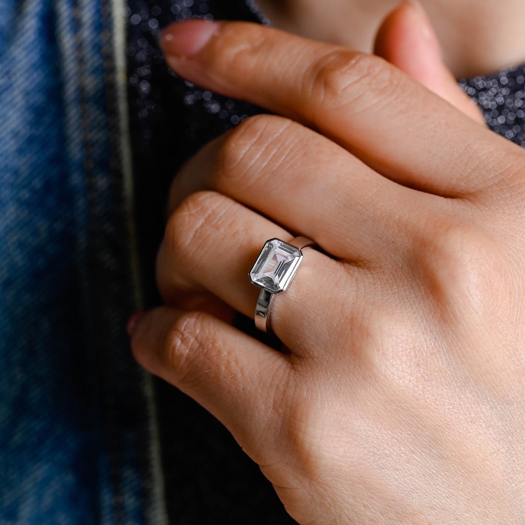 1.50CT East West Emerald Diamond Solitaire Moissanite Engagement Ring