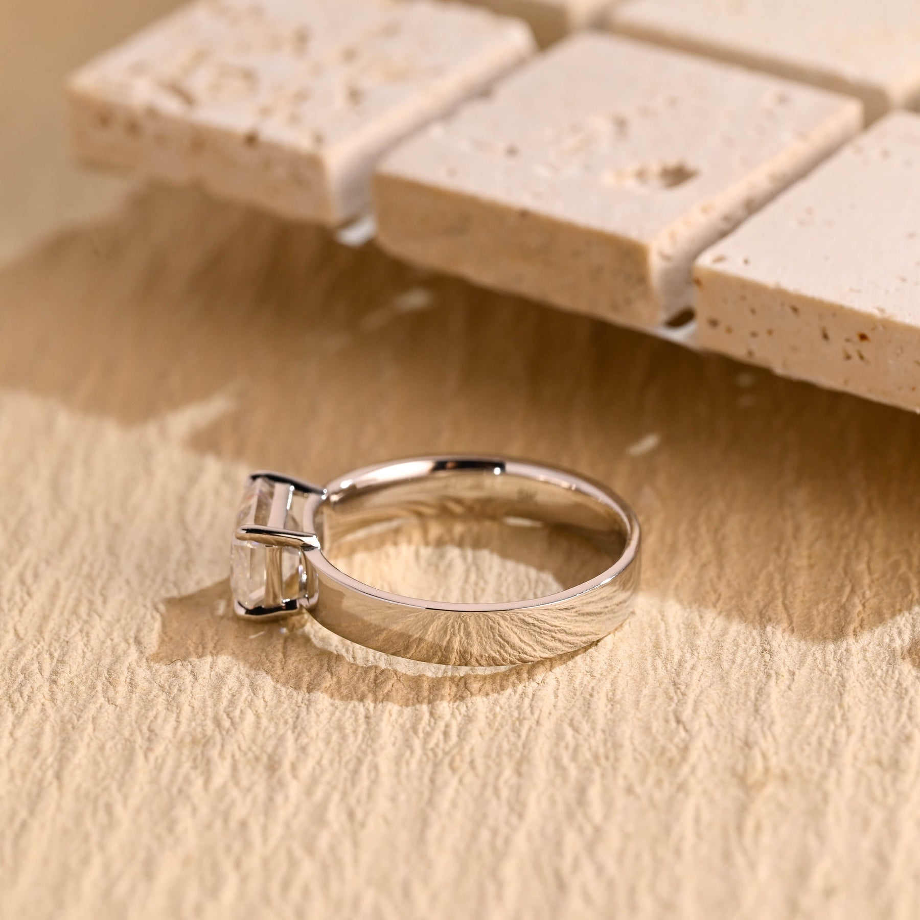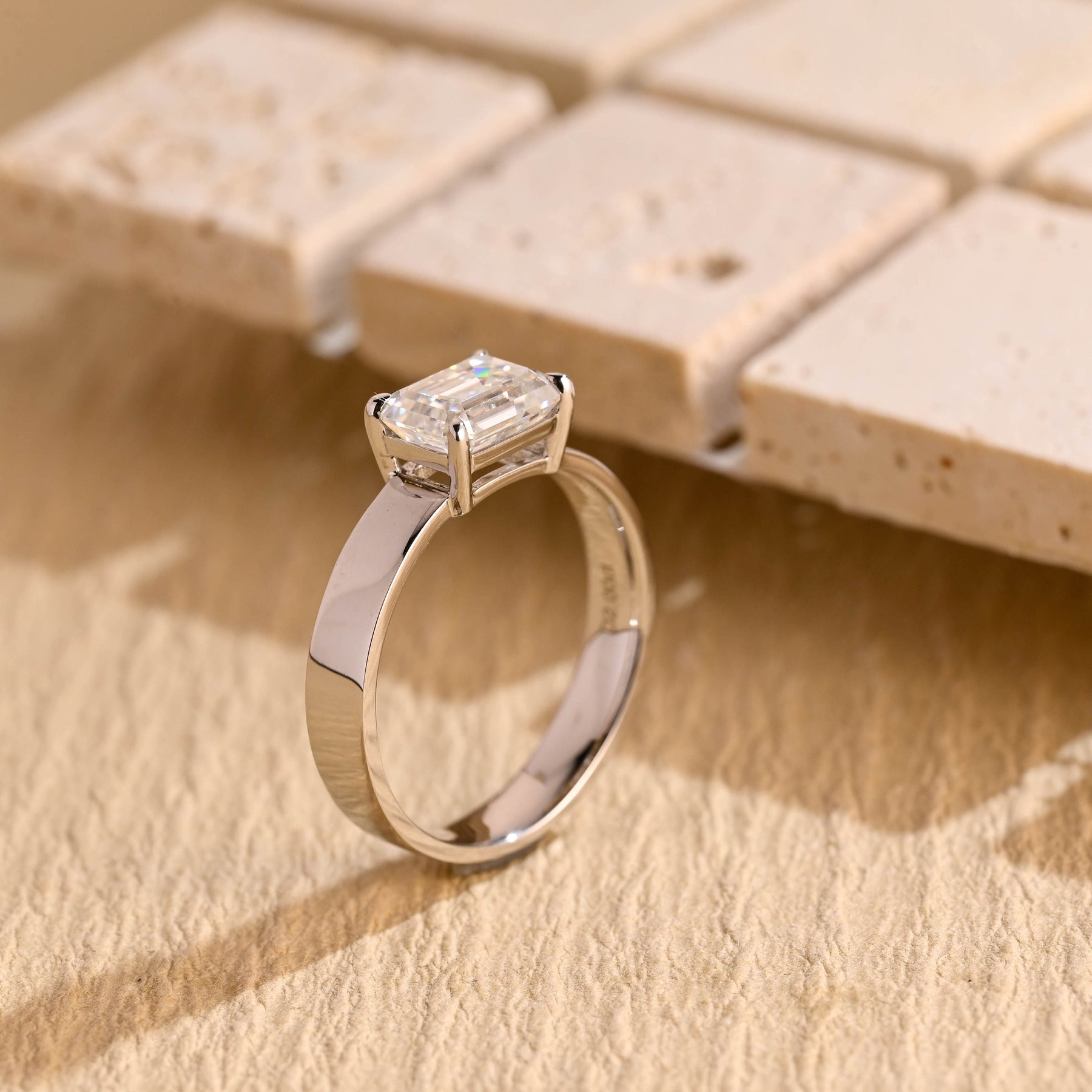 1.0CT Emerald Cut Wide Band Solitaire Moissanite Engagement Ring