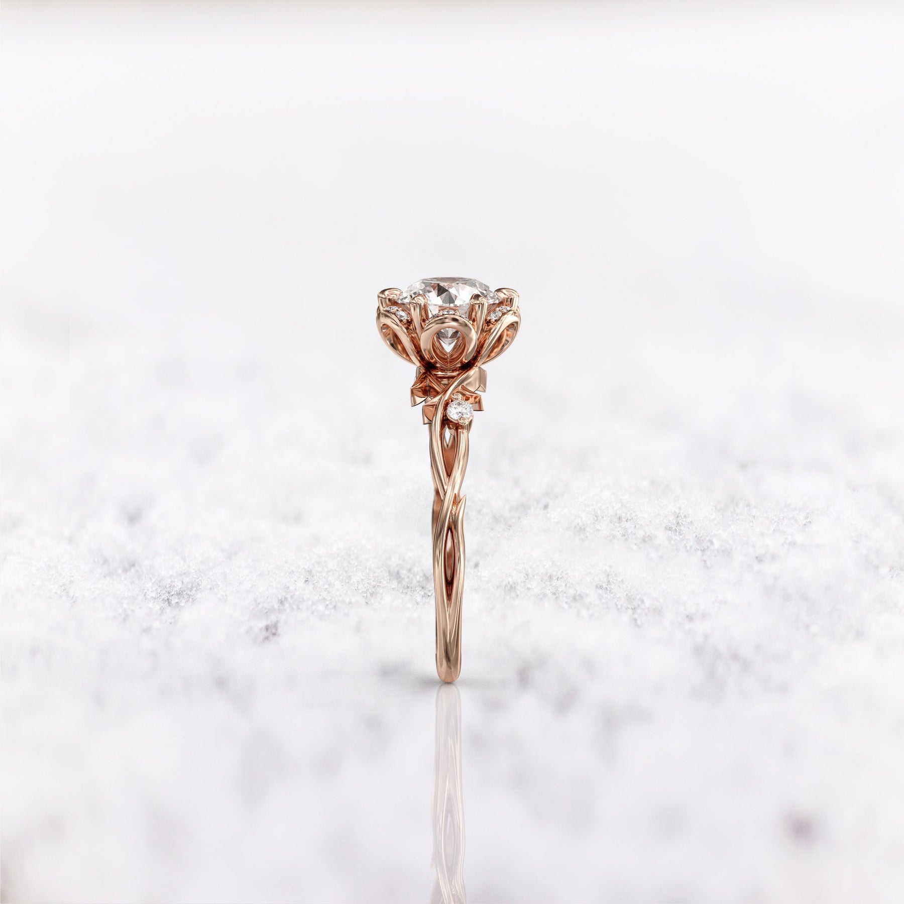 1.0 CT Round Cut Halo Moissanite Diamond Twig Engagement Ring