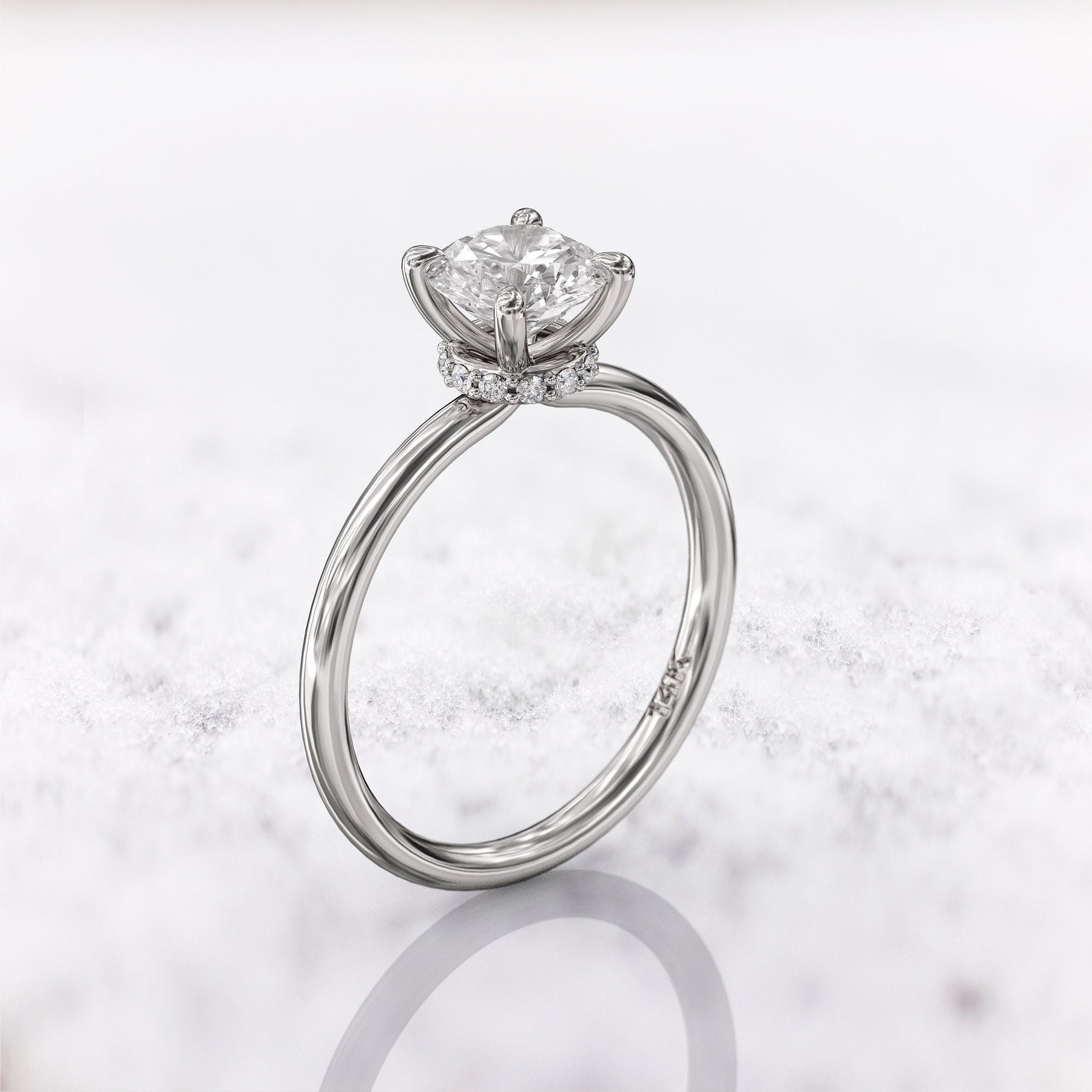 1.0 CT Round Cut Moissanite Hidden Halo Diamond Engagement Ring