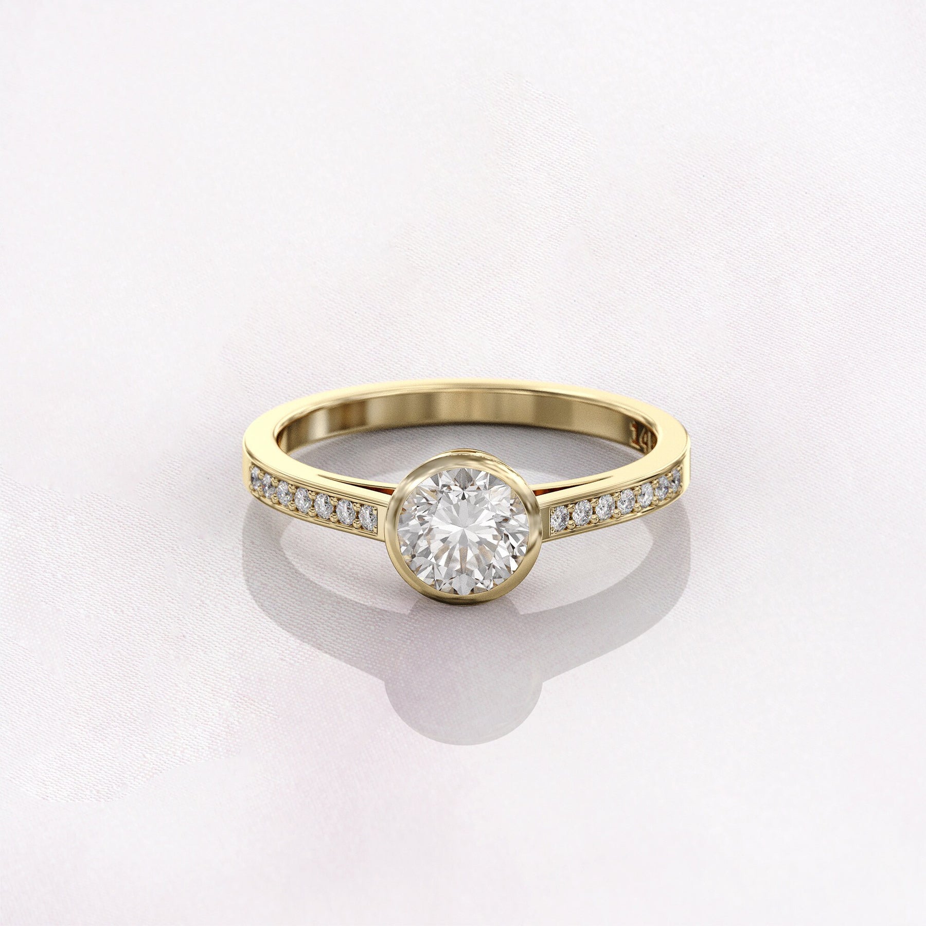 1.0 CT Round Cut Moissanite Bezel Pave Engagement Ring